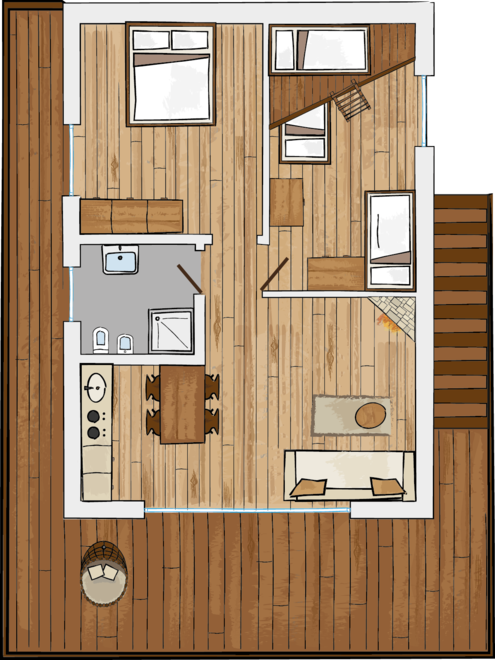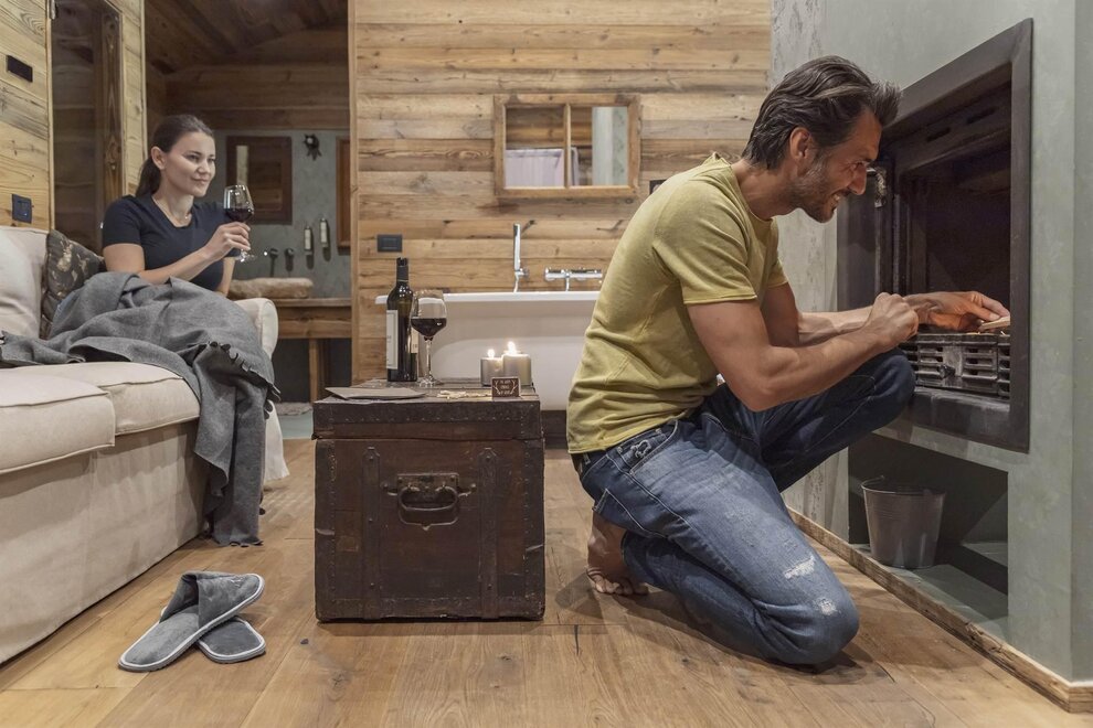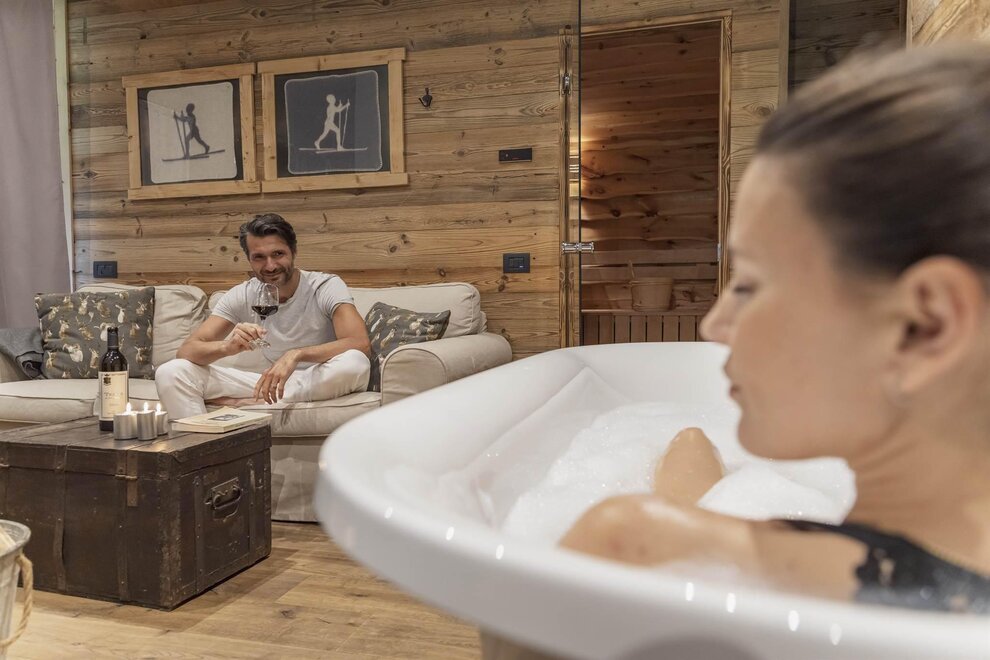 Ontwikkeld over twee verdiepingen, is dit gezellige chalet een echte droom voor liefhebbers van ontspanning: de benedenverdieping beschikt namelijk over zowel een privé-sauna als een jacuzzi binnen. Voor momenten van pure wellness die je in de intimiteit van je eigen chalet kunt beleven.