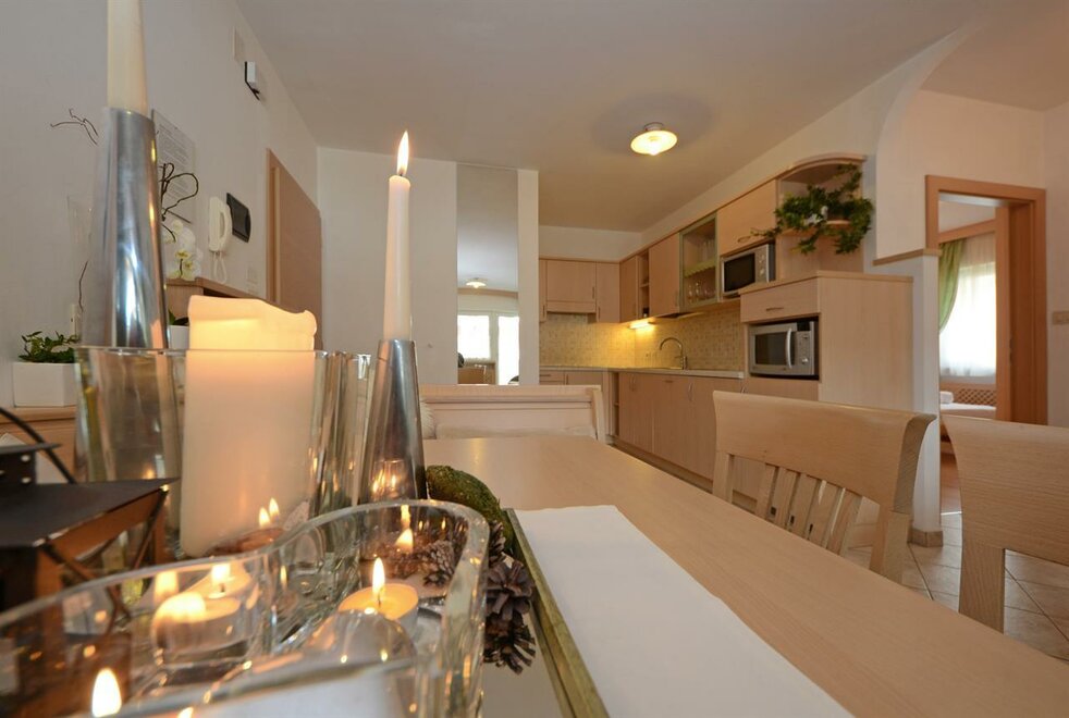 Our residence has 12 apartments suitable for 2/3/4/5 people. It is located in the centre of Vigo di Fassa. It enjoys an excellent position that is also very peaceful. Perfect for families.