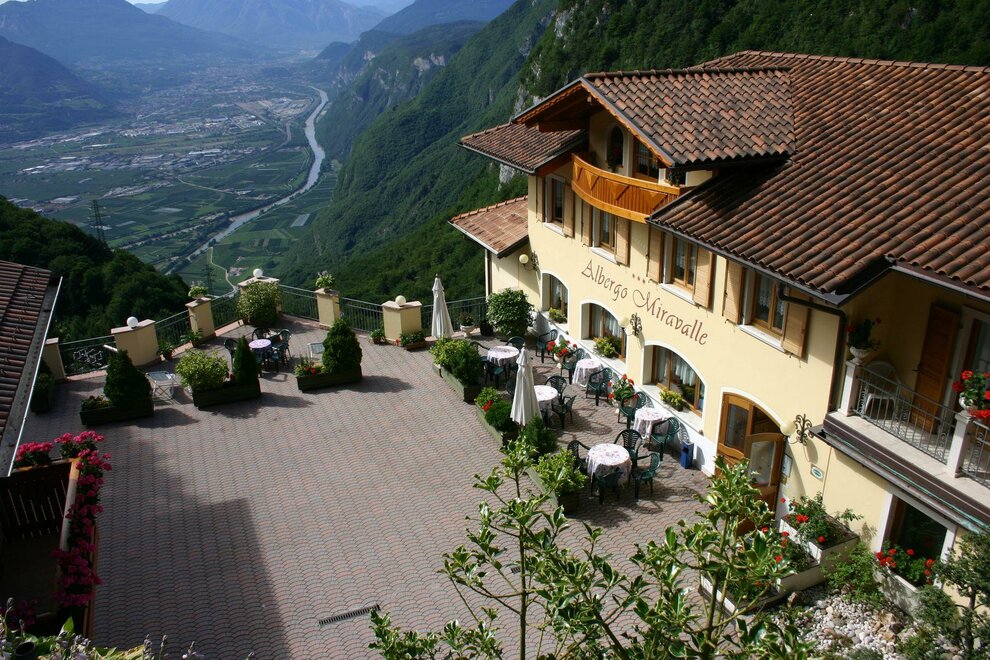 Net buiten de bebouwde kom, omgeven door het groene beukenbos, domineert het Hotel, in een panoramische positie, de hele Vallei van de Adige.