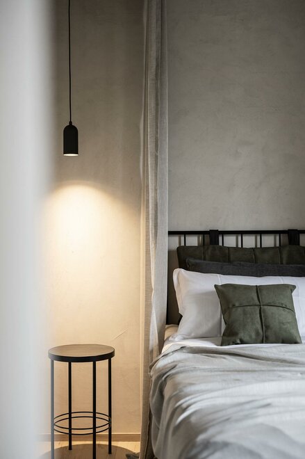 Twee voormalige kloostercellen samengevoegd tot een ruime kamer met een plafond dat meer dan vier meter hoog is. Voorzien van alle must-haves, heeft onze CELLE een tweepersoonsbed en is ingericht met verfijnde designelementen.