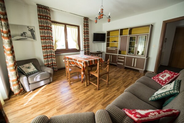 Een van de grootste voordelen van onze vakantiehuis is zijn locatie: in het hart van Pinzolo, op een centrale maar rustige plek (noordelijke ingang van de via Matteotti) op slechts enkele tientallen meters van de belangrijkste voorzieningen van het dorp (coöperatieve supermarkt, banken, winkels, bars en restaurants), halverwege tussen de skiliften en het Pineta-gebied met zijn sportvelden. De dichtstbijzijnde skibushalte is 250 meter verderop.