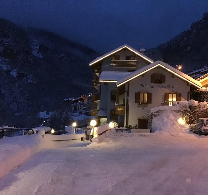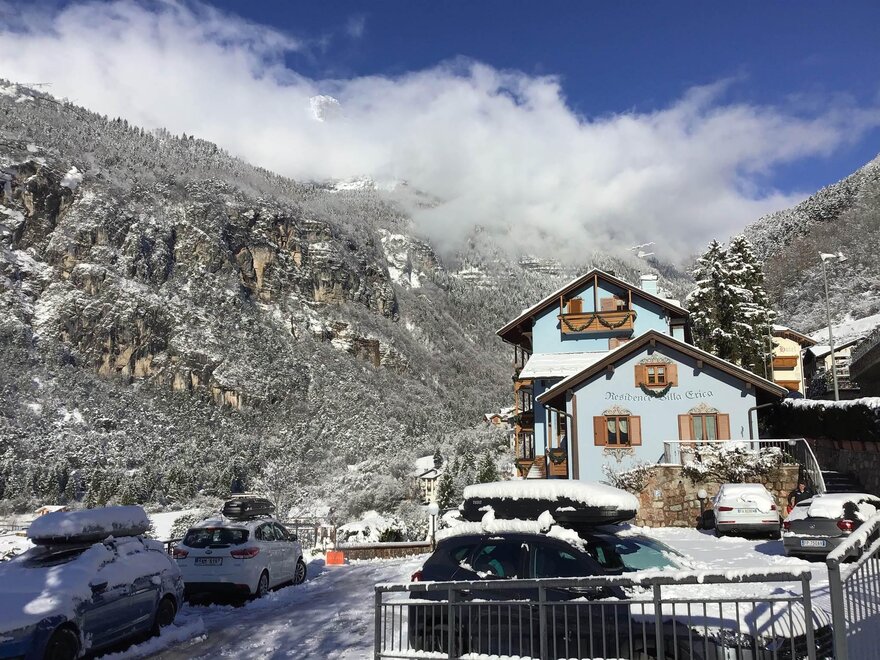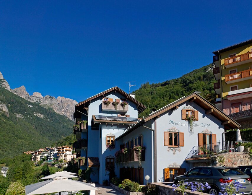 The residence Villa Erica is located near the pedestrian area of the village of Molveno and is situated in a panoramic and quiet position, a few meters from the center, the beautiful lake and the lifts to the plateau of Pradel.
