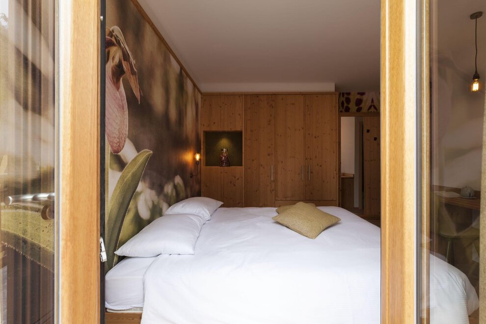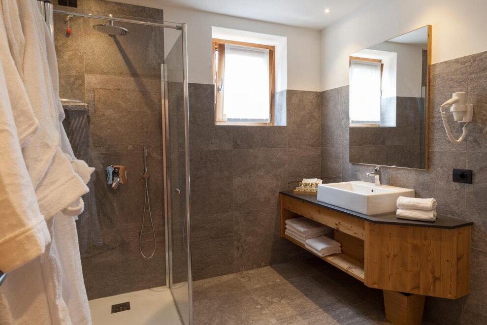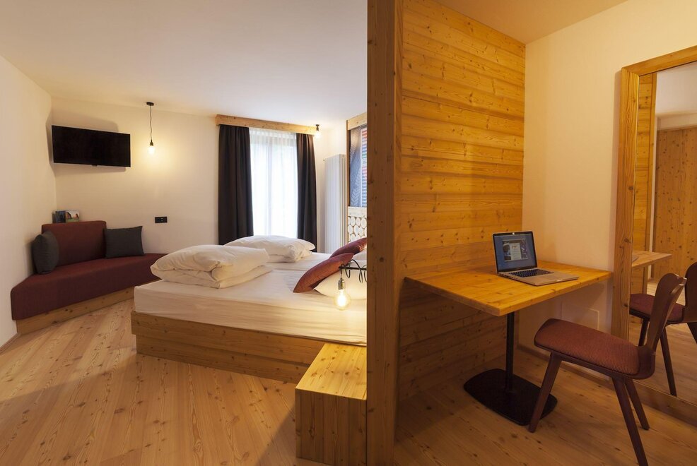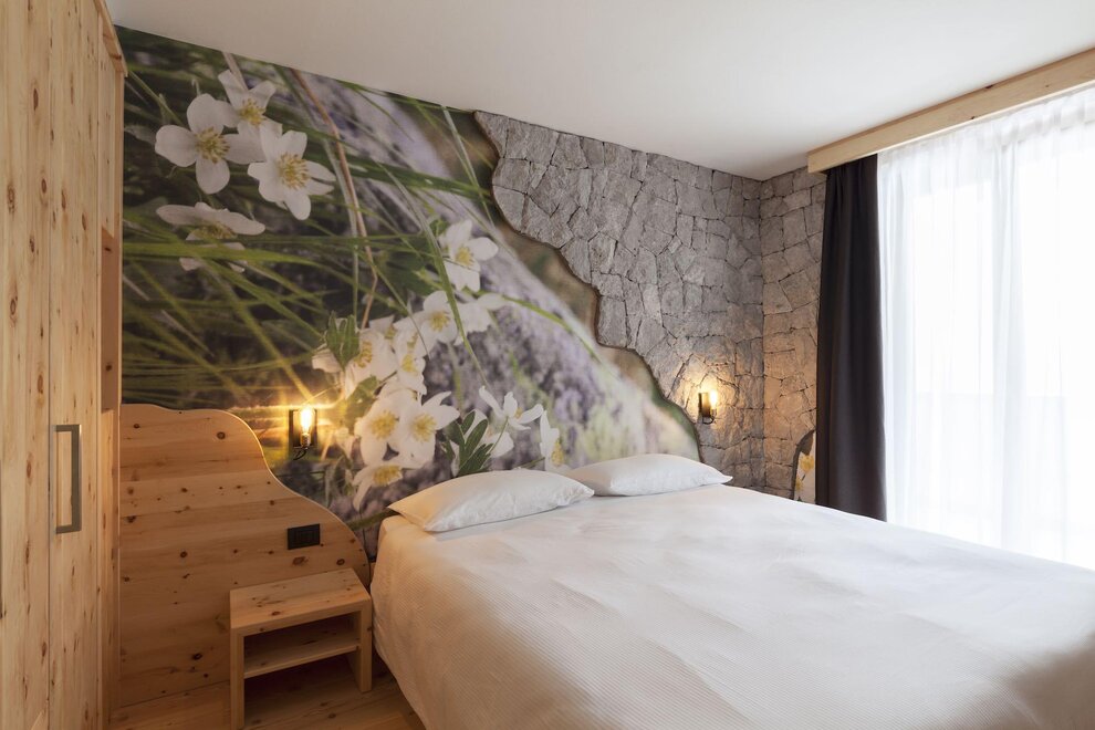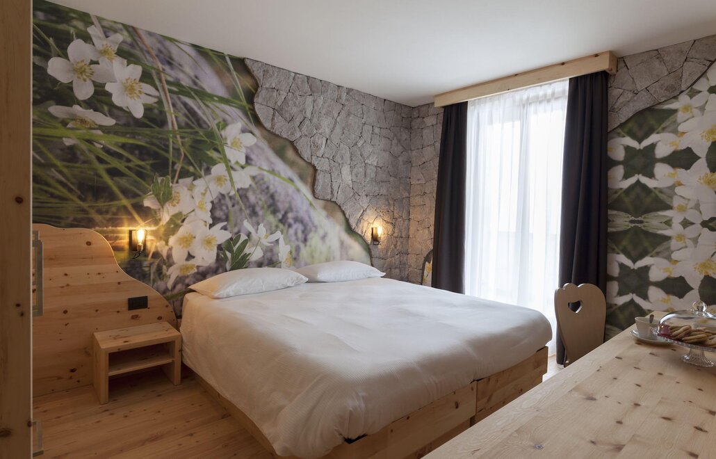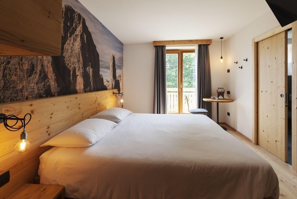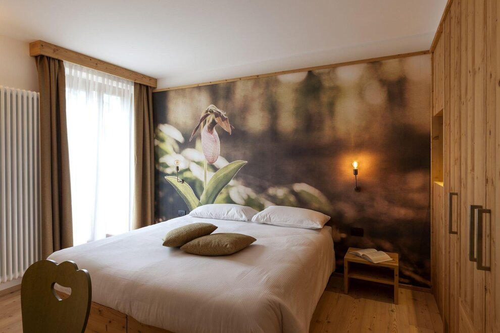 Onze superior kamer heeft een gezellige en verfijnde sfeer. Naast het panoramische uitzicht op de Brenta Dolomieten vanaf het privébalkon biedt deze oplossing een extra luxe met een privé-sauna direct in de kamer