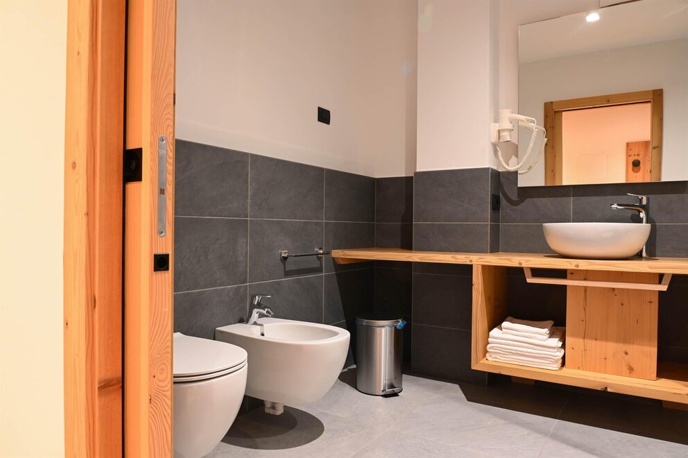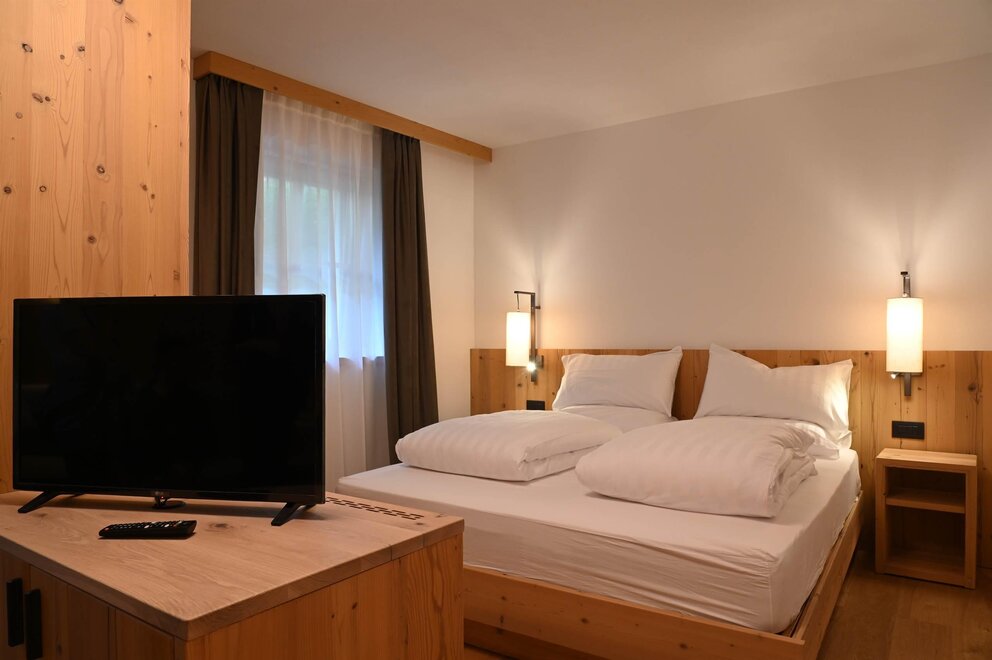 Onze Junior Suite is ontworpen om de gast zowel een woonruimte met een zithoek en bankje als een ruim balkon te bieden vanwaar men de Dolomieten van Brenta kan bewonderen.