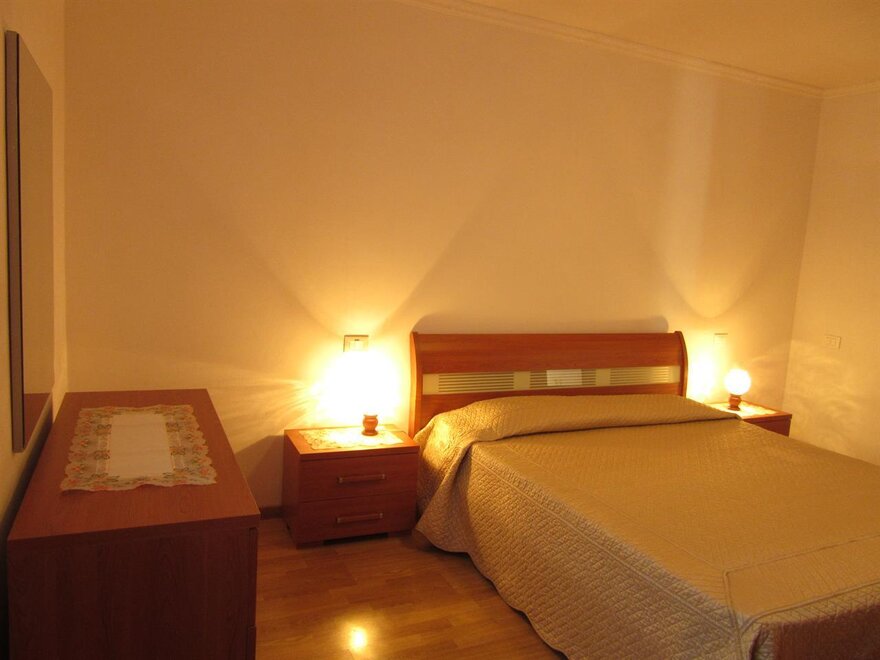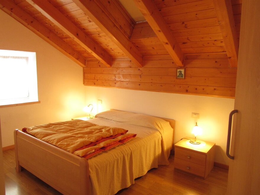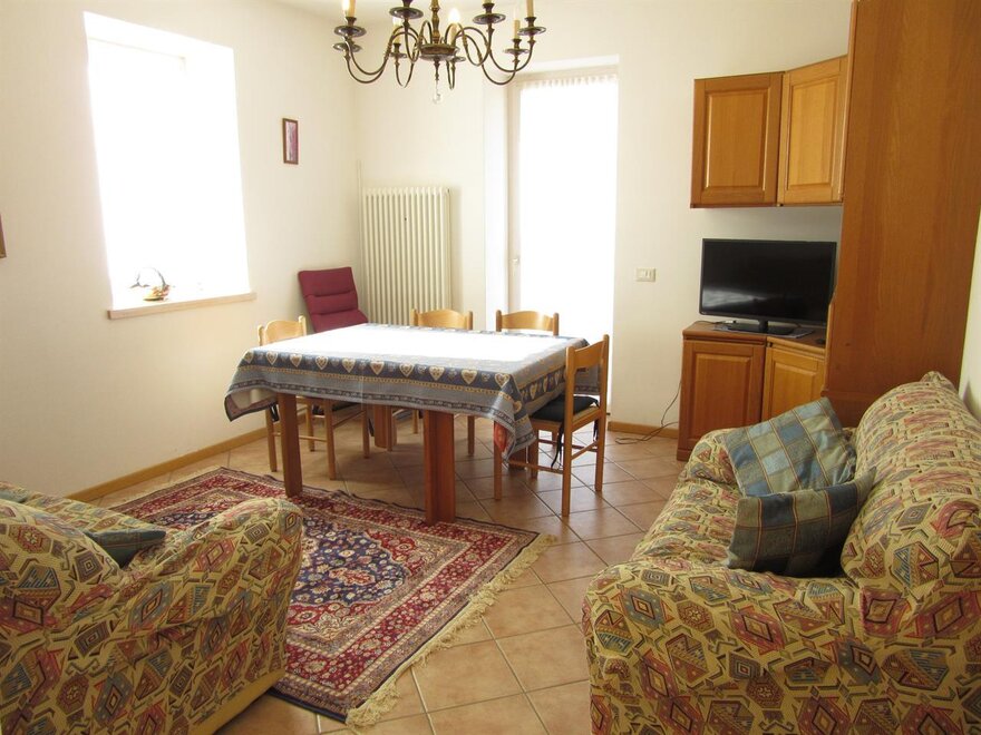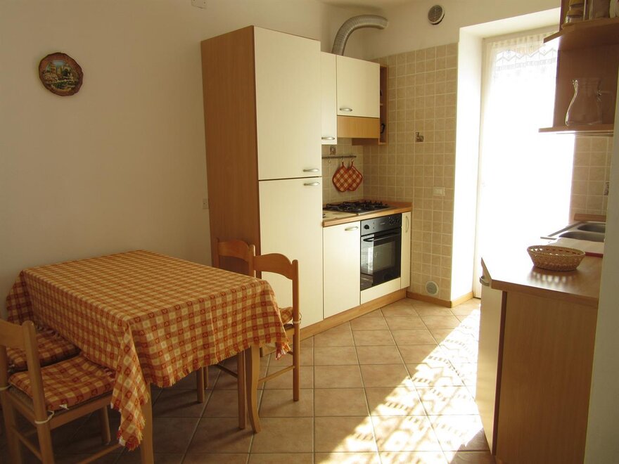 Appartement met 2 slaapkamers (4 personen + 1), woonkamer met kitchenette, badkamer met douche, panoramisch terras. De inrichting is ruim en verzorgd. De uitrusting bestaat uit koelkast + vriezer, oven, tv, wasmachine, strijkijzer en haardroger, pannenset, servies en bestek, dekens en dekbedden, winterdekbedden. Parkeergelegenheid gereserveerd. Tuin en externe park van eigen bezit toegankelijk voor de gasten van het huis.