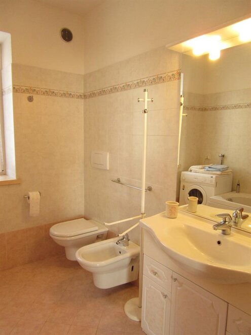 Appartement met 1 slaapkamer (2 personen + 1), keuken met woonkamer, badkamer met douche, panoramisch terras. De inrichting is ruim en verzorgd. De uitrusting bestaat uit koelkast + vriezer, oven, tv, wasmachine, strijkijzer en haardroger, pannenset, servies en bestek, dekens en dekbedden, winterdekbedden. Gereserveerde parkeerplaats. Tuin en buitenpark in eigendom toegankelijk voor de gasten van het huis.