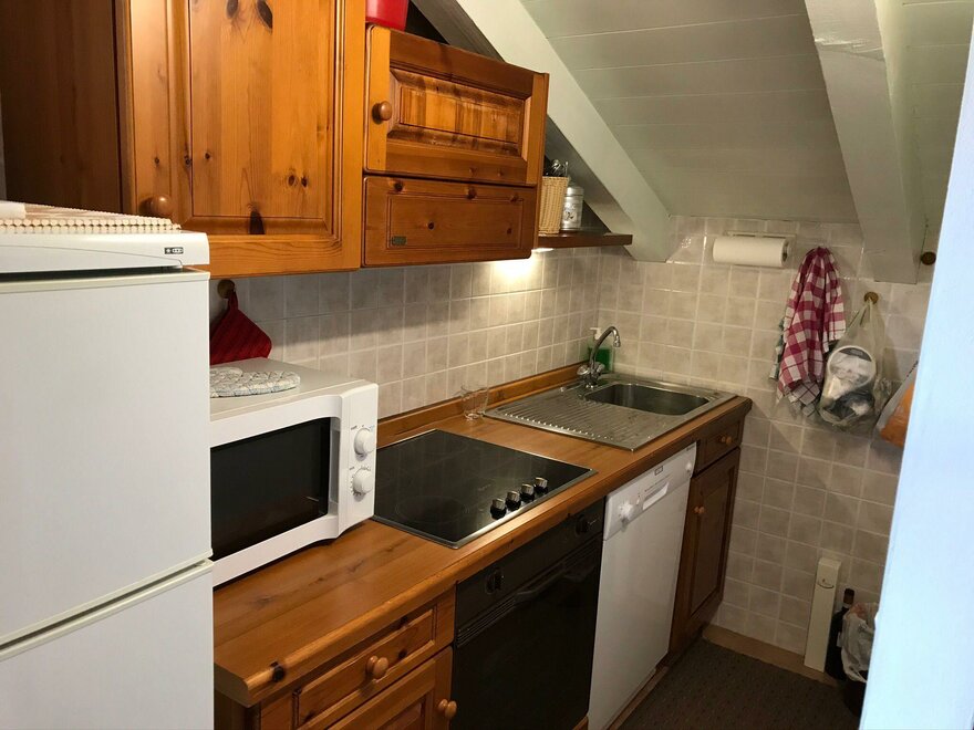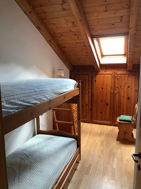 Appartement met 2 slaapkamers (1 slaapkamer met een tweepersoonsbed, 1 stapelbed), 1 badkamer, keuken en woon/eetkamer.