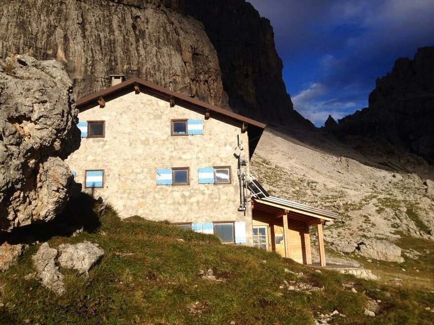 Dit is de laatste schuilplaats die ex novo is gebouwd door de SAT aan de voet van de Cima della Madonna. Het werd geopend in september 1980 en is vernoemd naar de Spigolo del Velo, een van de mooiste klassieke klimmen in de Dolomieten: een route van 440 meter rots die voor het eerst werd beklommen in 1920 en die nog steeds alpinisten (ervaren) van over de hele wereld aantrekt. Niet ver weg, via de Cima Cimerlo, is er ook het via ferrata pad gewijd aan Dino Buzzati, de Bellunese journalist (en schrijver) die meer van de Pale di San Martino hield dan van enige andere dolomietengroep.