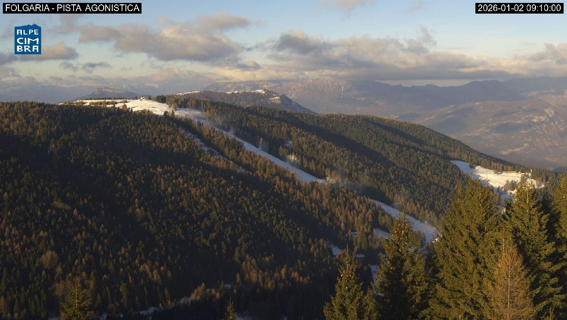 the Folgaria plateau, framed by forests and the Trentino peaks;