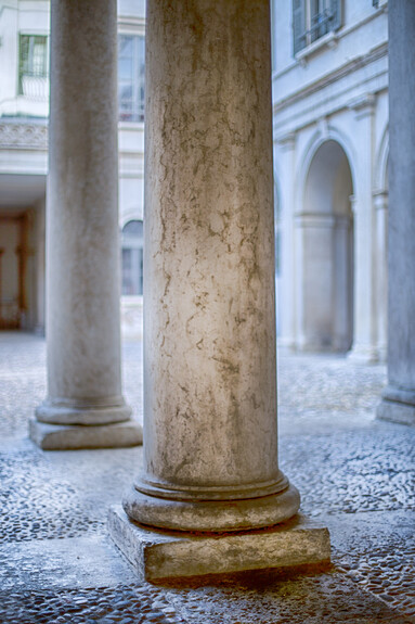 Podążaj dalej, do samego końca ulicy, mijając sklepowe witryny i lokale oraz główne wejście do miejskiego teatru Teatro Sociale. Zanim rozpoczniesz spacer po ulicy Via Manci, skręcając w prawo, zatrzymaj się na chwilę i zwróć wzrok w lewo. Twojej uwadze z pewnością nie umknie biała, elegancka facjata budynku o klasycznym zarysie, do którego wnętrza prowadzą drzwi z litego drewna, położone pomiędzy dwoma kolumnami korynckim i u góry zwieńczone niewielkim balkonem.