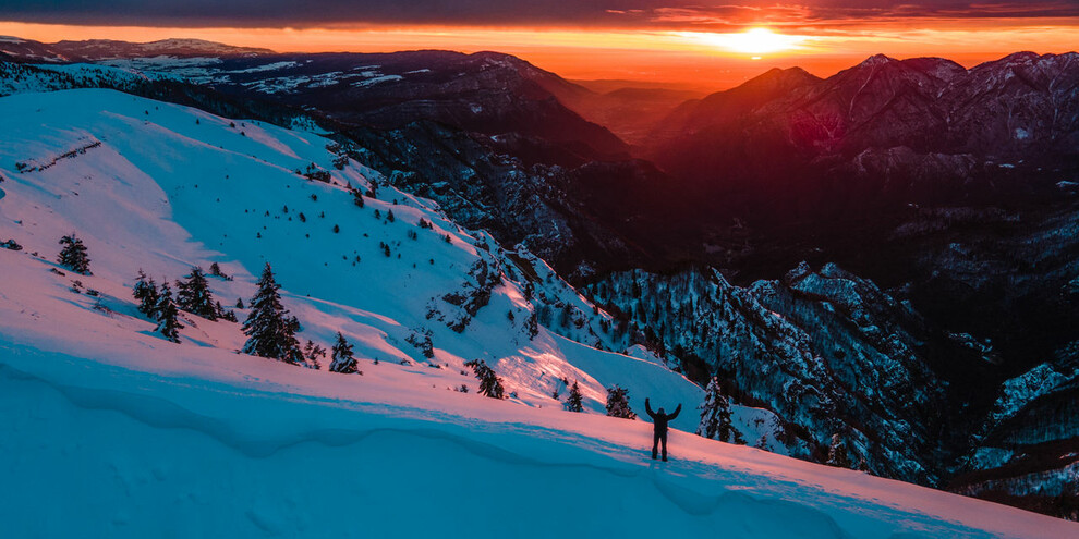 Spaceruj po śniegu na rakietach śnieżnych, najlepiej w towarzystwie przewodnika. Jeśli robisz to o zachodzie słońca, a Twoim celem jest chata, w której możesz zatrzymać się na kolację, to doświadczenie staje się niezapomniane. Mówimy o wędrówkach na rakietach śnieżnych organizowanych na Monte Baldo, w Lessinia, na Monte Zugna i w dolinach Leno nocą.