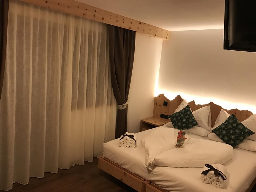 Pokoje są całkowicie wykonane z drewna typowego dla naszej Doliny Fiemme: głównie modrzewiowego i cirmolo. Ich naturalny zapach i ciepło będą towarzyszyć Twoim snom i chwilom relaksu, sprawiając, że poczujesz się otulony przytulną atmosferą gór, która nas otacza.