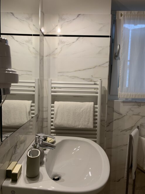 Pokój rodzinny składa się z dwóch połączonych pokoi z wspólną łazienką, oddzielonymi od przestrzeni wspólnych, zapewniając w ten sposób szczególną prywatność.