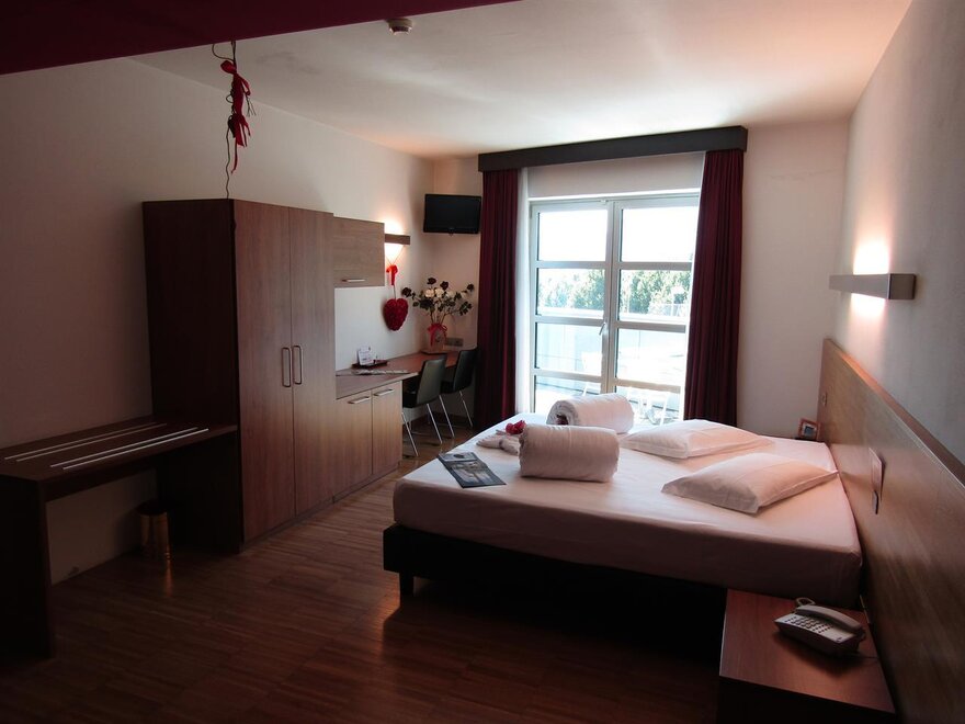 Jasny pokój z oknem w łazience; urządzony z prostą elegancją i bogaty w komfort, akustycznie izolowany i chroniony przed falami elektromagnetycznymi. Odpowiedni na krótki pobyt służbowy lub dłuższy pobyt; materace są najwyższej jakości, aby zapewnić najlepszy wypoczynek.