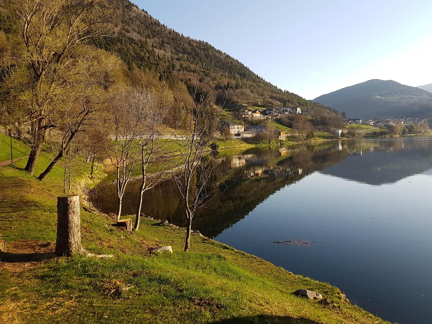 Usytuowany na Płaskowyżu Pinè na wysokości 1000 metrów nad jeziorem Piazze.