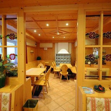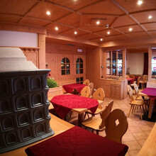 Śniadanie i lunch serwowane są w samoobsługowej sali z widokiem bezpośrednio na stoki, natomiast kolacja serwowana jest w wewnętrznej sali hotelu. Jedzenie to tradycja włoskiej gastronomii.