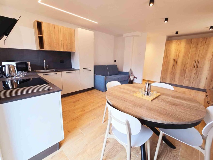 Centralna lokalizacja obiektu pozwala w pełni doświadczać życia w miasteczku i jego tradycji, ponieważ znajduje się zaledwie 300 metrów od głównego placu i przystanku Skibusa, co czyni go idealnym dla tych, którzy chcą codziennie odkrywać ośnieżone stoki lub szlaki turystyczne.