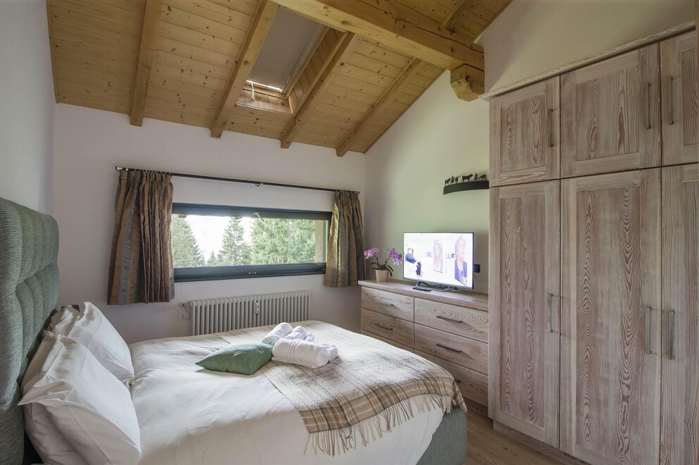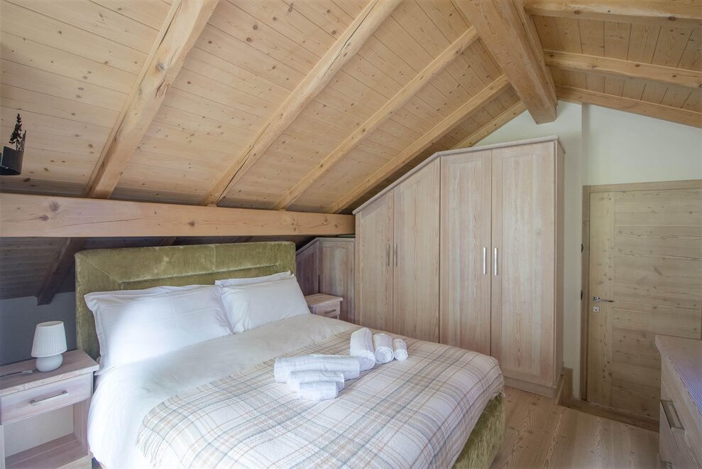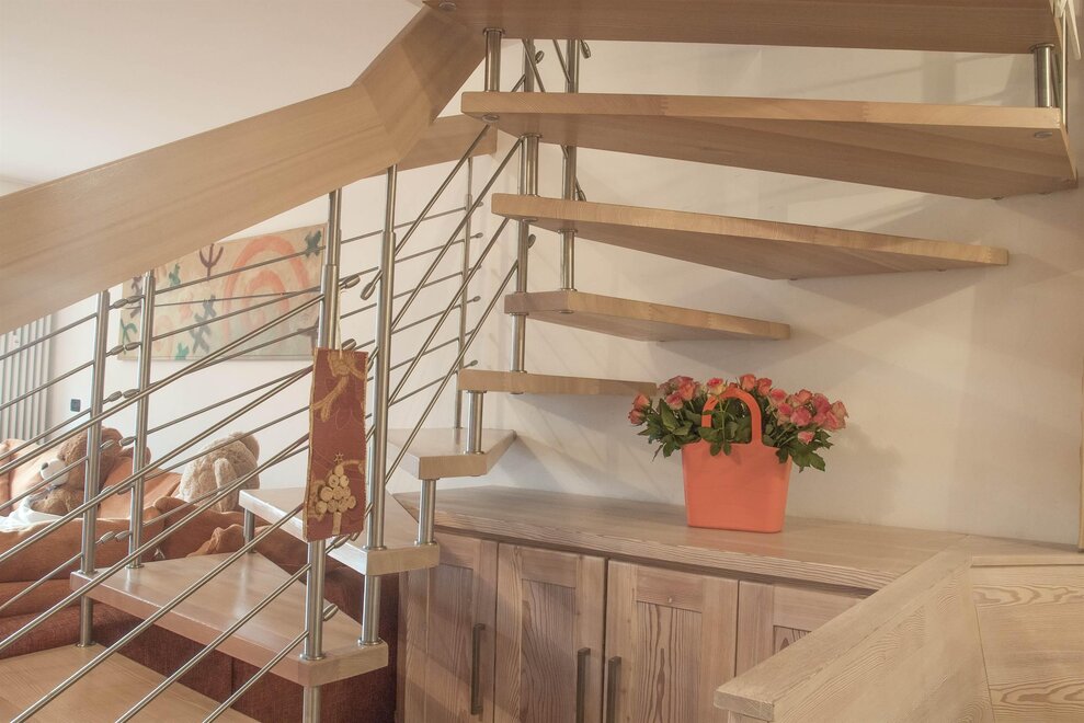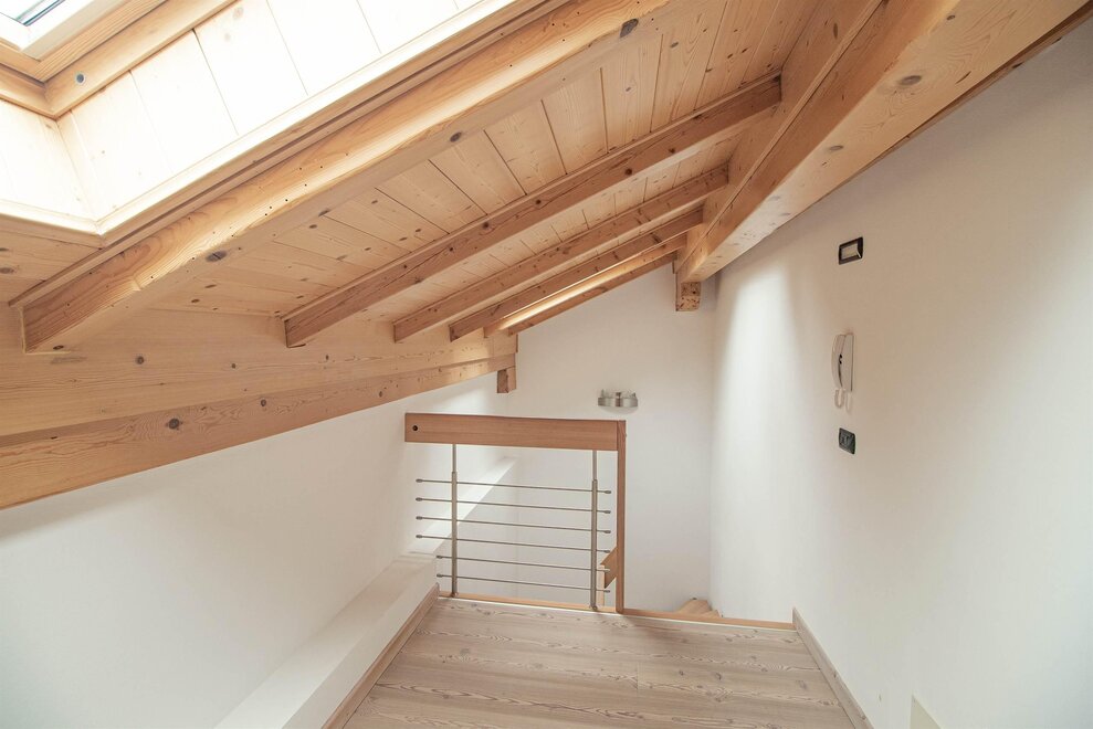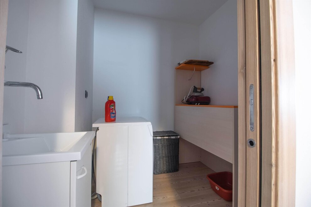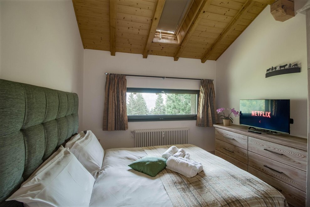 Na parterze wita Was przestronny salon z dużą kanapą narożną, telewizorem smart i kominkiem: to serce domu, gdzie można się zrelaksować po dniu spędzonym na stokach lub szlakach. Duże okno zapewnia wspaniały widok na Dolomity i napełnia pomieszczenia naturalnym światłem. Obok znajduje się przestronna i w pełni wyposażona kuchnia z dużym drewnianym stołem, zachęcająca do wspólnego spożywania obiadów i kolacji. Na piętrze znajduje się także łazienka z wanną z hydromasażem, idealna na chwile czystego relaksu.