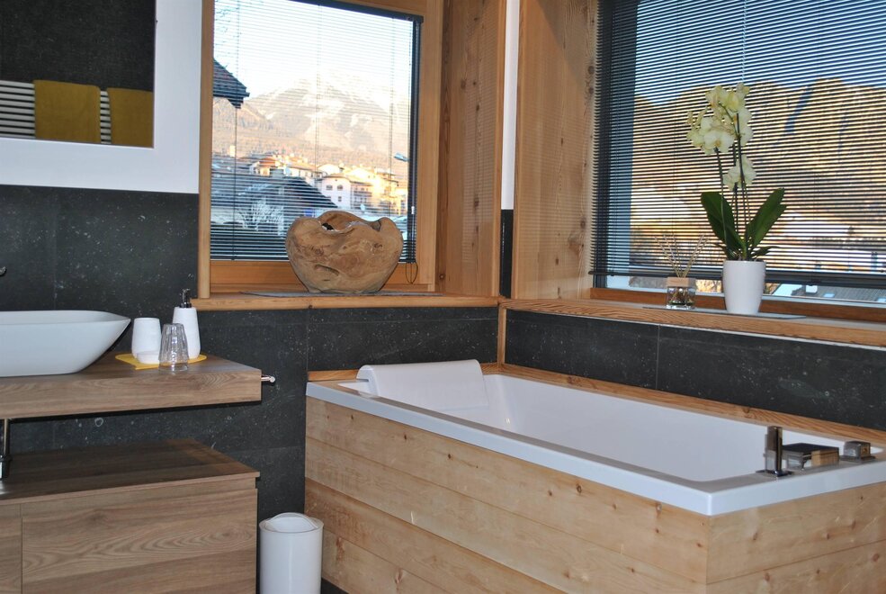 Nowo odnowione mieszkanie, w którym każdy kąt został przemyślany i starannie dopracowany z dbałością o szczegóły. Drewno jest prawdziwym bohaterem: od podłóg po meble, od sypialni po łazienki, ciepło tego materiału, tak cenionego w Dolinie Fiemme, otula każde pomieszczenie, tworząc wyjątkową i przytulną atmosferę.