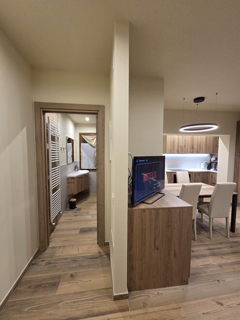Przytulne mieszkanie w Transacqua, w cichym miejscu, zaledwie kilka minut od centrum Fiera di Primiero. Sypialnia z podwójnym łóżkiem, salon z telewizorem smart + Netflix i rozkładaną sofą, nowoczesna kuchnia oraz łazienka z przestronnym prysznicem. Prywatny parking i przechowalnia nart. Idealne na zimowy pobyt wśród ośnieżonych Dolomitów, wędrówek na rakietach, jarmarków bożonarodzeniowych i alpejskiej atmosfery. Stoki San Martino di Castrozza i Passo Rolle są w zasięgu 20 minut.
