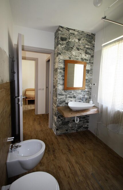 Duży i jasny apartament o powierzchni 110 m² na parterze z autonomicznym dostępem składający się z 3 sypialni z 9/10 miejscami do spania, kuchni, jadalni, podwójnej łazienki z prysznicem. Zakwaterowanie zostało całkowicie odnowione w 2024 roku i wyposażone w telewizor, bezpłatne Wi-Fi 1 Gb, pralkę, zmywarkę, lodówkę amerykańską, mikrofalówkę, czajnik oraz automatyczny ekspres do kawy. Dostęp odbywa się poprzez mały ogrodzony dziedziniec do wyłącznego użytku z cienistą winoroślą, umeblowany stół i krzesła, co pozwala cieszyć się również przestrzenią na zewnątrz.