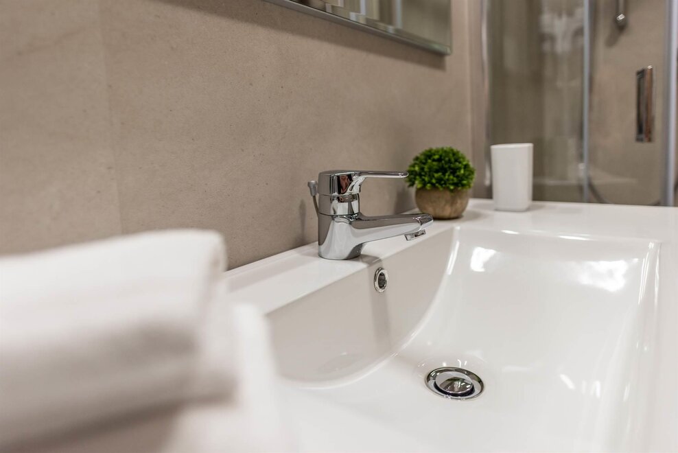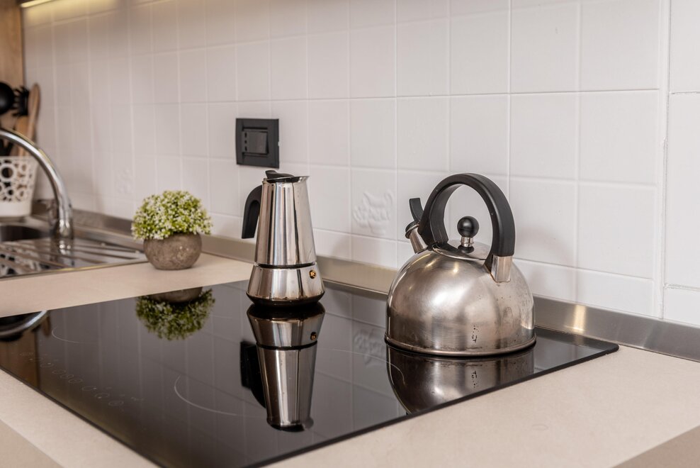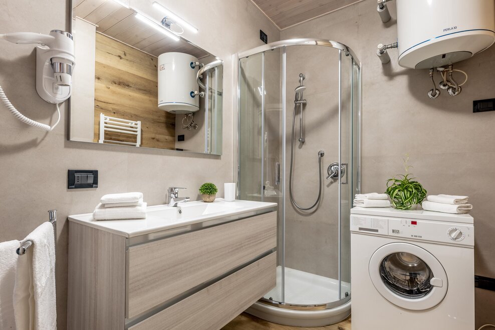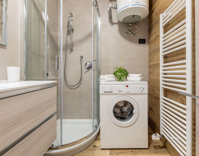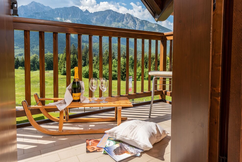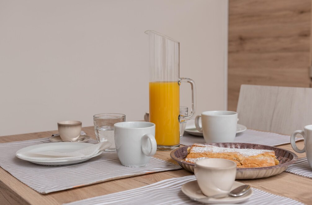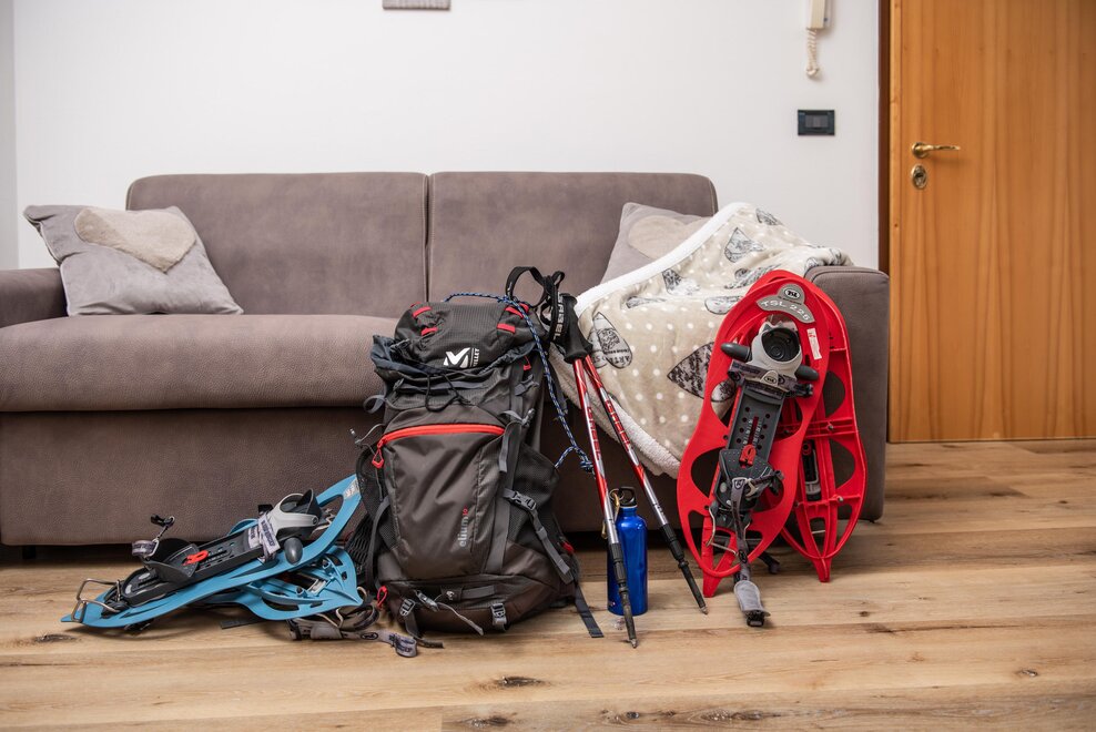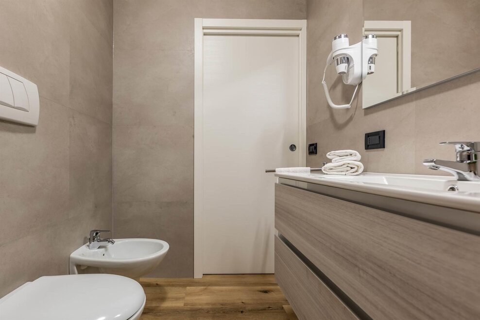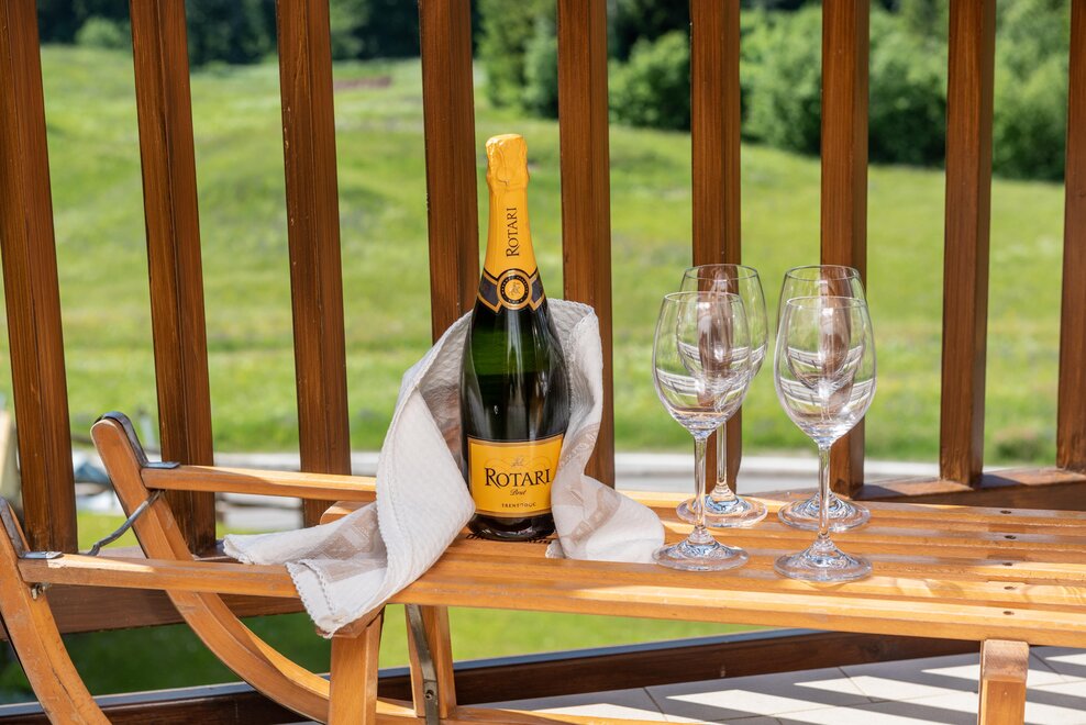 Kuchnia-żyjnia prowadzi na taras z pięknym widokiem na Dolomity di Brenta. Są dwie sypialnie małżeńskie, obie z drzwiami na balkon, które umożliwiają dostęp do drugiego balkonu. Rozkładana sofa podwójna pozwala na zakwaterowanie 6 osób. Przestronna łazienka wyposażona jest w prysznic, bidet, pralkę oraz suszarkę do włosów. Kuchnia jest wyposażona w płytę indukcyjną, lodówkę z zamrażarką, kuchenkę mikrofalową i zmywarkę, telewizor z płaskim ekranem, darmowy Internet-wi-fi. Powierzchnia całkowita 60 m².
