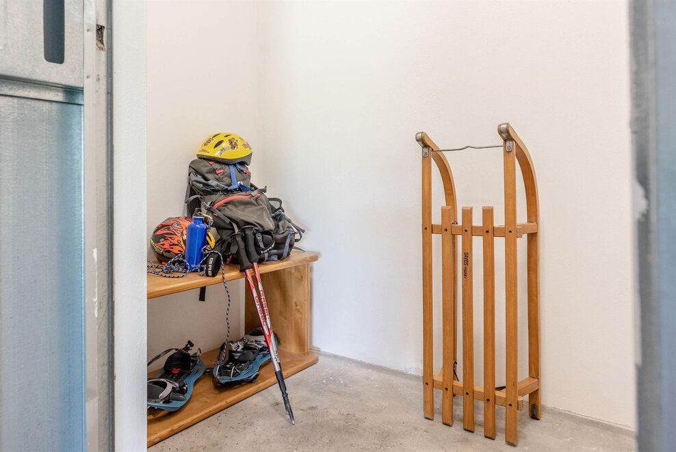 Prywatne miejsce parkingowe w garażu z napędem elektrycznym z przylegającą przechowalnią na narty, wózki dziecięce, rowery i sprzęt sportowy.