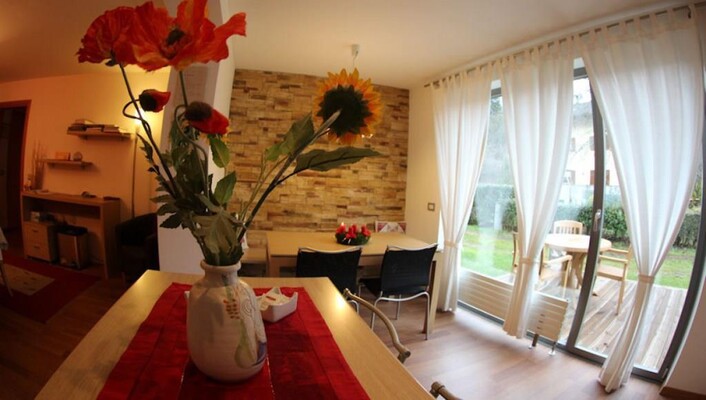 lodówka, nowoczesne umeblowanie, ADSL, ręczniki do dyspozycji, kołdry, łąka, WiFi, ręczniki kąpielowe, możliwość korzystania z pralki, pikowane narzuty, ekspres do kawy, meble ogrodowe, suszarka do włosów, max.... zwierzęta domowe: 1, akcesoria toaletowe, pościel do dyspozycji