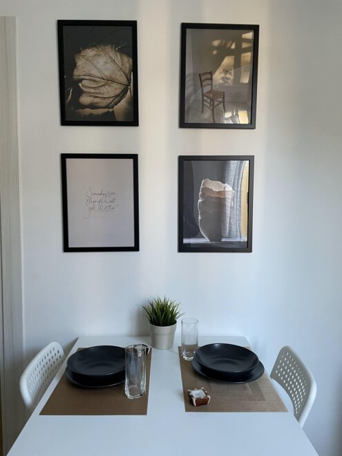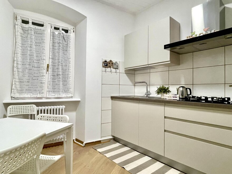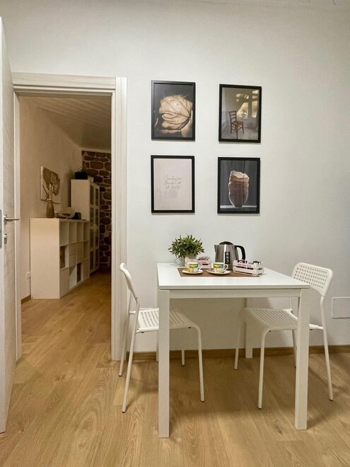 suszarka do włosów, ręczniki kąpielowe, możliwość przygotowywania posiłków, kuchnia, pokój dla niepalących, WiFi, gaśnica, naczynia kuchenne, kołdry, ekspres do kawy, podłoga drewniana albo parkiet, akcesoria toaletowe, aneks kuchenny, pralka, podstawy (Ręczniki, pościel, mydło i papier toaletowy), szafa, czajnik bezprzewodowy, self check in, jadalnia, apartment without fitted carpet, bez dywanu, oddzielna kuchnia, taras, ręczniki do dyspozycji, odtwarzacz CD, linen provided , bielizna stołowa i kuchenna, możliwość korzystania z pralki, radio, wentylator, mikrofalówka, Wi- Fi bezpłatnie, crockery and cutlery , kuchenka gazowa, mask and gel kit, pościel do dyspozycji, lodówka, telewizor, pikowane narzuty, ogrzewanie, naczynia kuchenne do dyspozycji gości