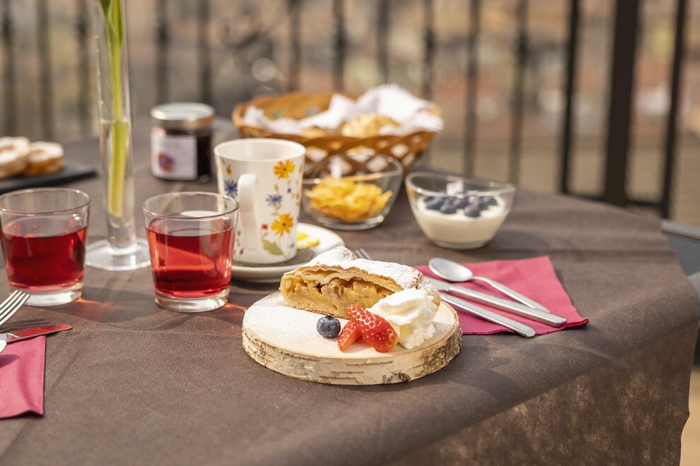Pokój jest wyposażony w balkon z widokiem na Brentę lub dolinę Sarca, skierowany na południe.