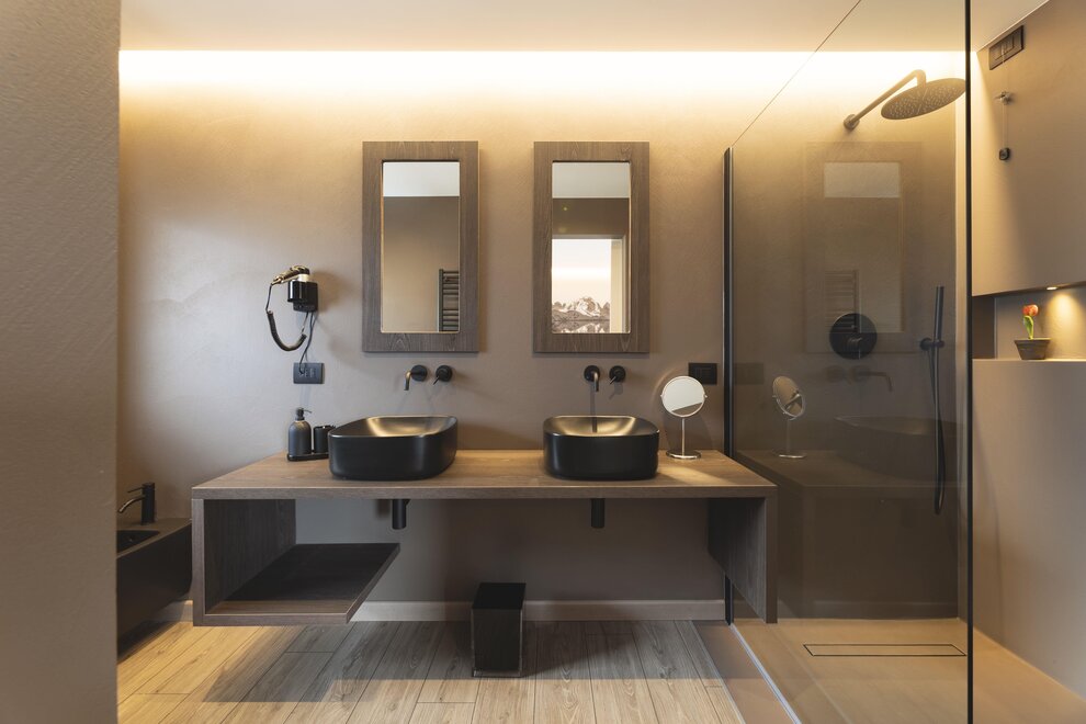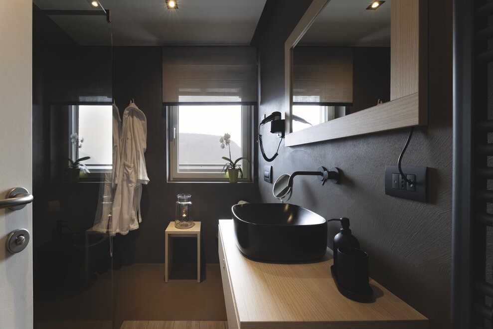 Suite Wellness to nowoczesny pokój o powierzchni 33 m², z widokiem na Dolomity di Brenta lub na Borgo di San Lorenzo. Pokój składa się z dwóch oddzielnych przestrzeni, łazienki z prysznicem w rozmiarze king size oraz wanną z hydromasażem dla dwóch osób. Podłoga jest drewniana, a znajduje się tam również strefa herbaciana, aby zapewnić naszym gościom codzienną przyjemność, o każdej porze.