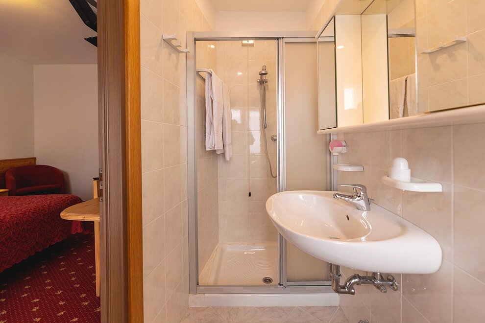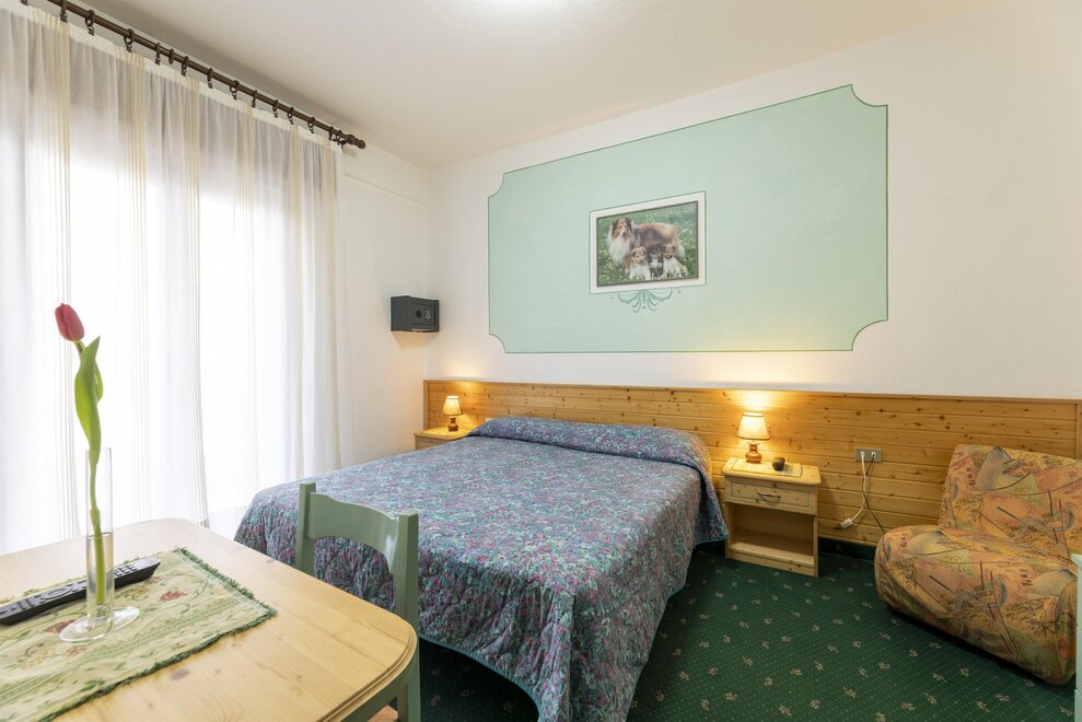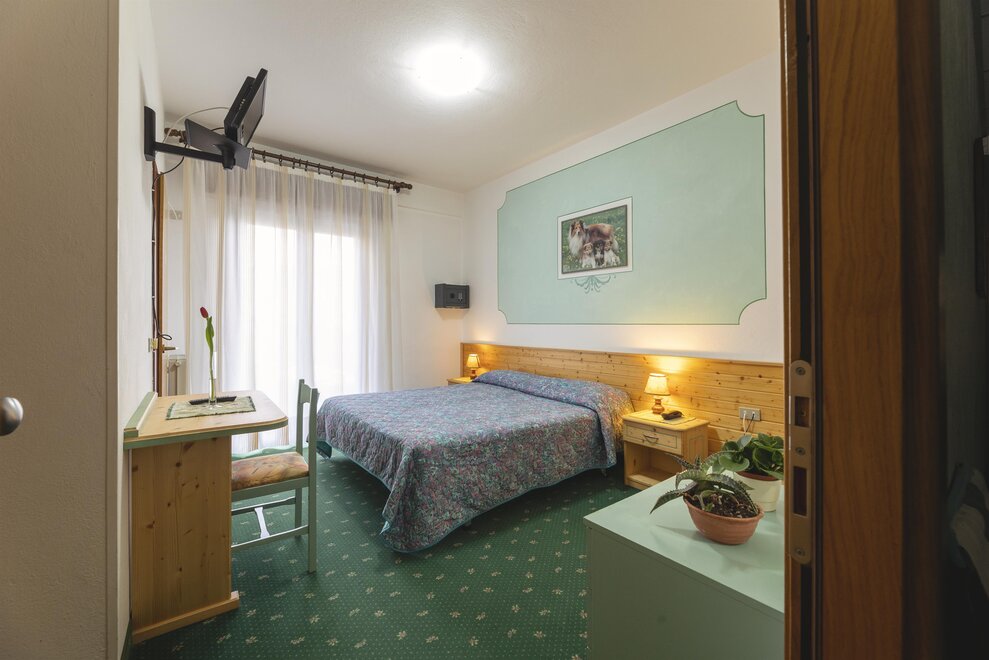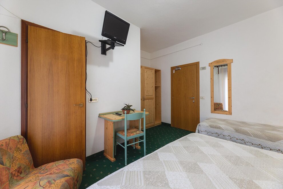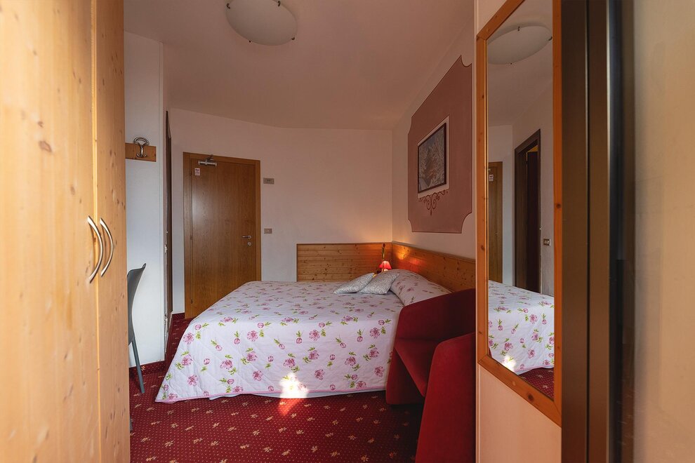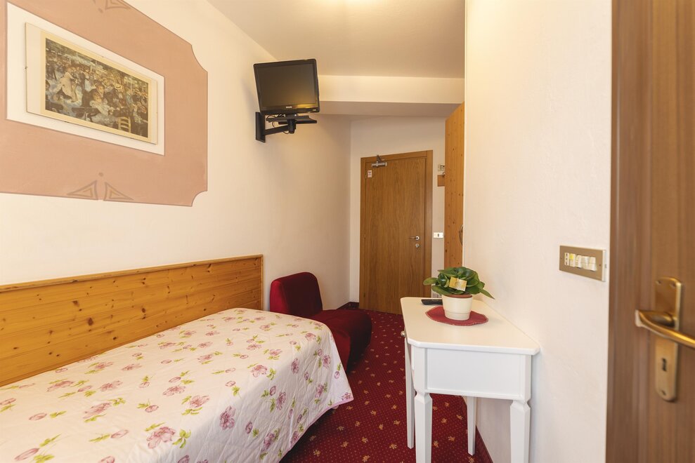 Pokój znajdujący się na drugim piętrze, dla jednej osoby, prosty, ale zadbany, z meblami z naturalnego drewna świerkowego. Pokój posiada balkon, z którego można podziwiać piękny widok na Brenta lub panoramiczny widok na dolinę Sarca, zwróconą na południe.