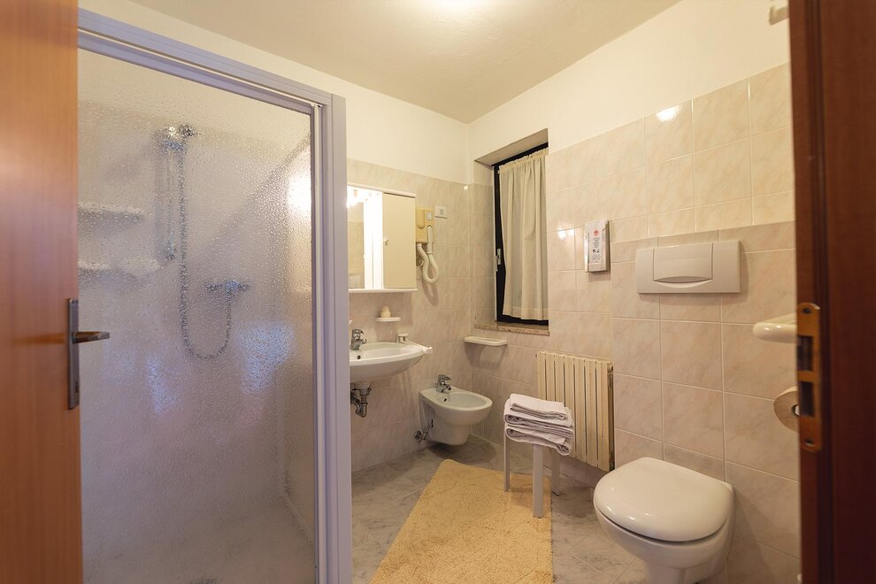 Bardzo przestronny pokój, całkowicie odnowiony, z drewnianą podłogą, łazienkami z żywicy z eleganckim wykończeniem i prysznicem king size, zestaw kosmetyków z naturalnymi środkami czyszczącymi. Telewizor 40 cali, minibar, czajnik z herbatami ziołowymi. Panoramiczny balkon z widokiem na Brentę lub dolinę Sarca zwróconą na południe.