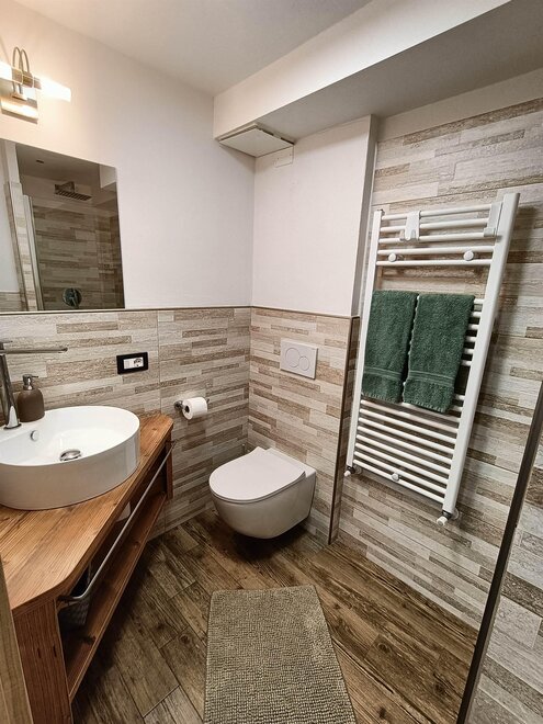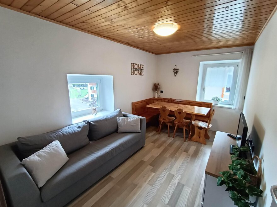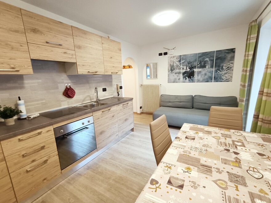 Nasze apartamenty, niedawno odrestaurowane, są wyposażone we wszelkie udogodnienia, WI-FI, kuchnię z pełnym wyposażeniem, Smart TV, pościel oraz ręczniki, przechowalnię nart z podgrzewaczami butów i przechowalnię rowerów.