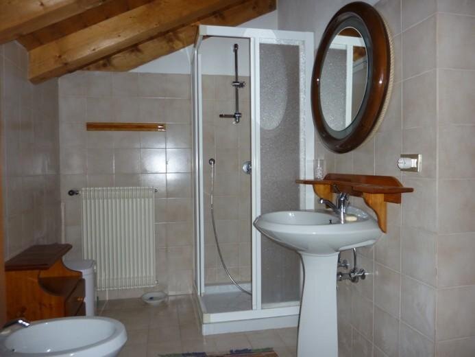 - Pietro górne: jedna sypialnia małżeńska, jedna dla trzech osób (łóżko pojedyncze + piętrowe) oraz łazienka z prysznicem, bidetem i WC.