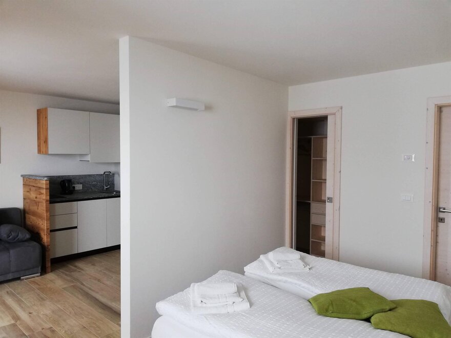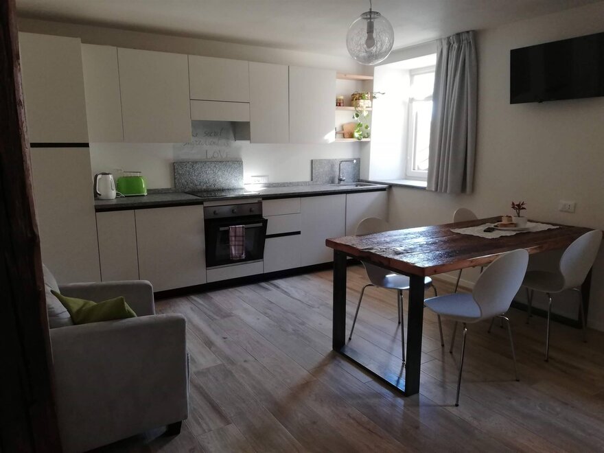 W aranżacji wnętrz postawiono na wybór materiałów naturalnych: kamień w blatach kuchennych, drewno w meblach, wyrafinowane stare drewno w stołach i meblach łazienkowych, a także w półkach i wnękach dekorujących różne pomieszczenia. Starannie dopracowane w najdrobniejszych szczegółach, mieszkanie oferuje na życzenie pościel do łazienki i sypialni; taras oferuje wspaniały widok na łańcuch górski Lagorai. Darmowe Wi-Fi. Przestronny schowek na narty lub rowery. Latem możliwość dostępu do ogrodu należącego do domu. Różne publiczne parkingi w pobliżu