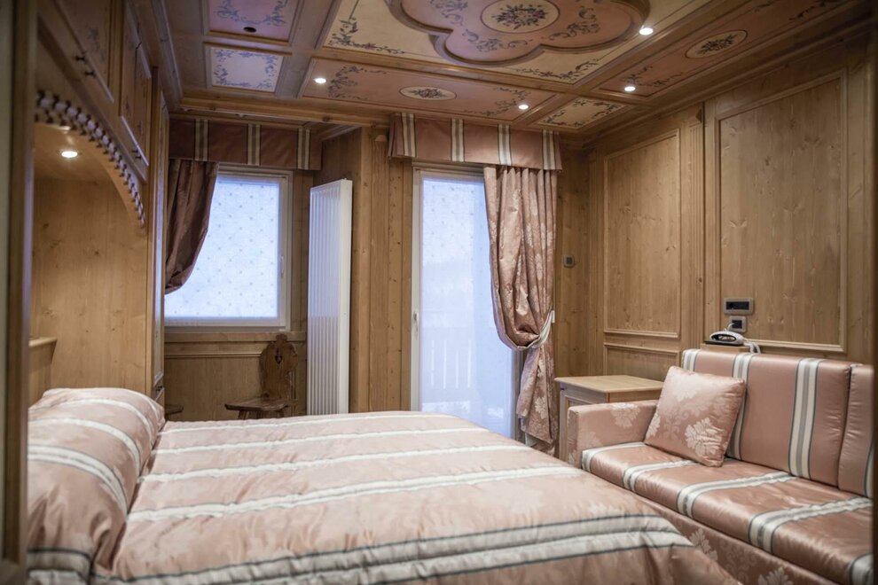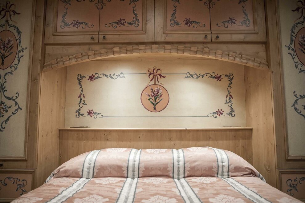 Pokój został zaprojektowany dla tych, którzy chcą zatrzymać się w hotelu, nie rezygnując z własnej niezależności dzięki oddzielnemu aneksowi kuchennemu i przegrodzie oddzielającej dwa sypialne pokoje. To idealny pokój rodzinny dla rodzin, które szukają komfortu i przestrzeni podczas wakacji w Trentino.Wyposażenie pokoju