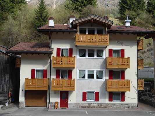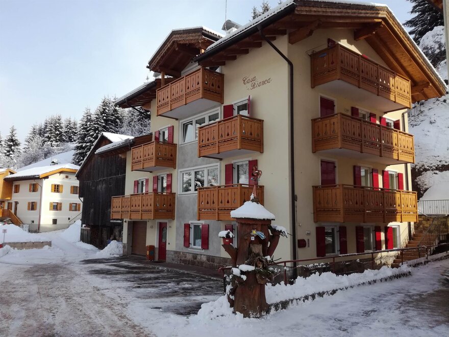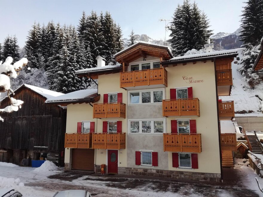 Dom Biały, wraz z przyległym stodołą, został odrestaurowany w zimie 2007, znajduje się w Soraga w Val di Fassa, oddalony o 2 km od Moeny i 3 km od Pozzy i Vigo di Fassa. Łatwo dostępny o każdej porze roku. Posiada dużą przestrzeń parkingową, oddalony o 5 minut od centrum i placu zabaw, a także sąsiaduje z trasą rowerową, która zimą staje się trasą narciarską "Marcialonga". Każda jednostka mieszkalna wyposażona jest w telewizor satelitarny, w pełni wyposażoną kuchnię oraz podwójne łazienki i grill na świeżym powietrzu. Dom dysponuje także windą, pralnią, przechowalnią nart oraz wspaniałym ogrodem z trawą, gdzie można się opalać.