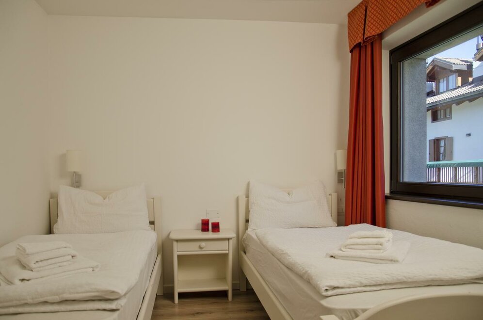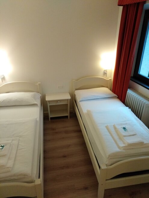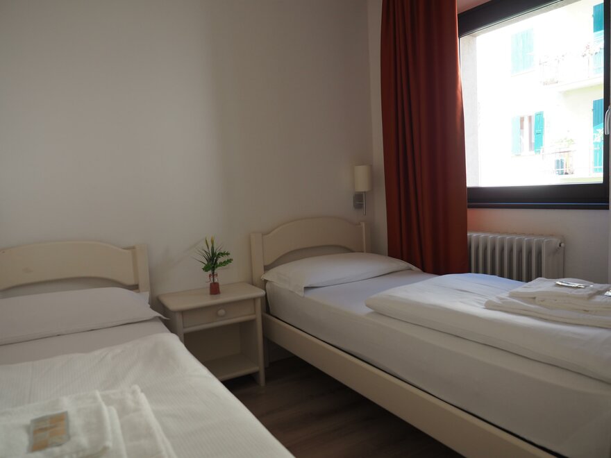 Pokój czteroosobowy z łóżkiem małżeńskim, dwoma łóżkami pojedynczymi lub łóżkiem piętrowym, urządzony w podstawowe meble z białego drewna z szczególną dbałością o czystość. Wygodny i przytulny, dzięki podłodze drewnianej, jest to idealne rozwiązanie dla rodziny szukającej relaksujących wakacji w sercu lasów Alpe Cimbra, zaledwie kilka kroków od tras narciarskich. Z pokoi można podziwiać pierwsze promienie słońca o poranku lub zrelaksować się przy wspaniałych zachodach słońca nad doliną. Pokój dysponuje prywatną łazienką z prysznicem i suszarką do włosów.