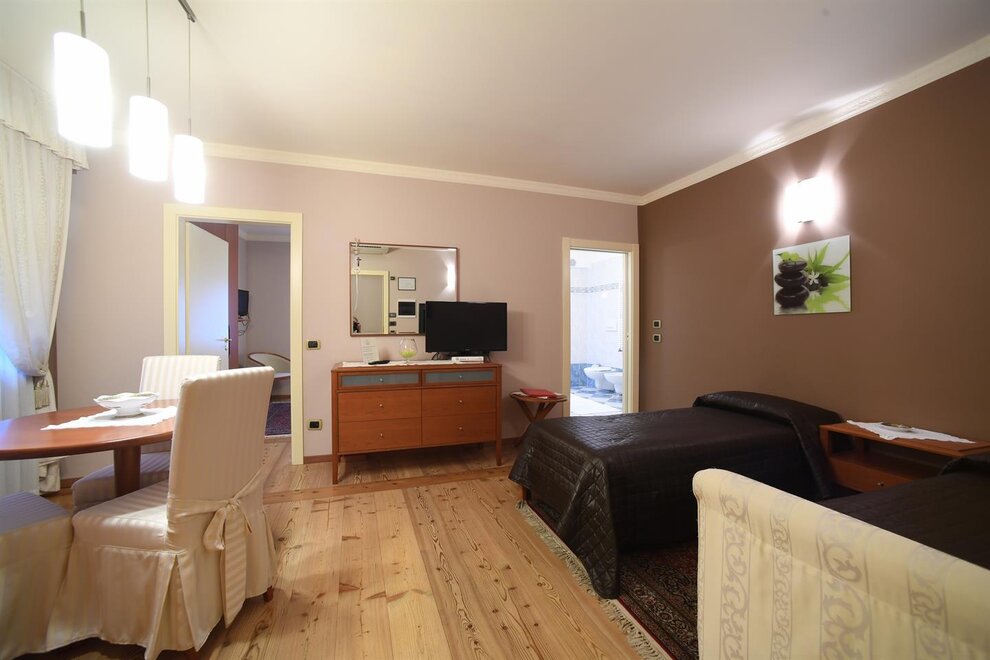 Pokoje są w pełni dźwiękoszczelne, wykończone materiałami akustycznymi, umeblowane w meble z litego drewna wykonane na zamówienie, na podłogach w parkiecie lub wykładzinie, każdy z przestronnymi łazienkami przylegającymi.