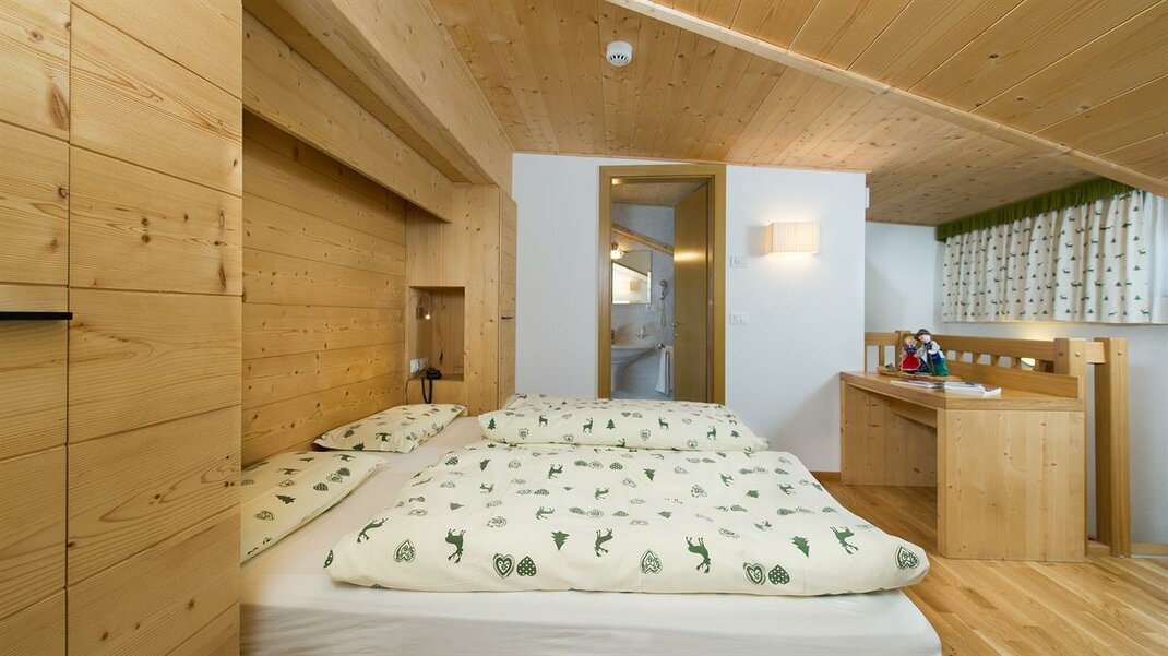 VIGO DI FASSA TRENTINO DOLOMITY Z centrum Vigo di Fassa, wspinając się w kierunku Przełęczy Costalunga, znajdziemy dzielnicę Tamion, która w malowniczym krajobrazie podkreśla wakacje w górach. Idealne dla miłośników narciarstwa, którzy w promieniu kilku kilometrów znajdą wszystko, czego pragną: wszystkie najbardziej znane stacje narciarskie doliny, Catinaccio, Carezza, Latemar, Lusia/Tre Valli, Buffaure/Ciampac i Sellaronda. Hotel Gran Mugon, nowo wybudowany, jest wyposażony we wszystkie udogodnienia, do których należy kategoria: telefon bezpośredni, TV satelitarna, łazienka/prysznic, balkon z panoramicznym widokiem, sejf i suszarka do włosów we wszystkich pokojach, sauna, solarium i sala gier. Kuchnia jest starannie przygotowywana przez właściciela z szczególną uwagą na tradycje ladine; całość uzupełnia doskonała piwnica win z Trentino - Alto Adige. Szeroki prywatny parking. W pobliżu znajdują się: pole golfowe, boisko do piłki nożnej, wyciągi narciarskie, ścieżka do biegania, trasa biegowa i strzelectwo, stadnina koni i ścianka wspinaczkowa, jezioro.
