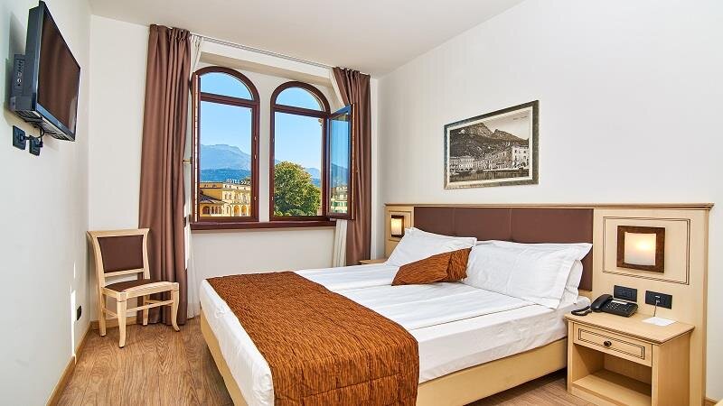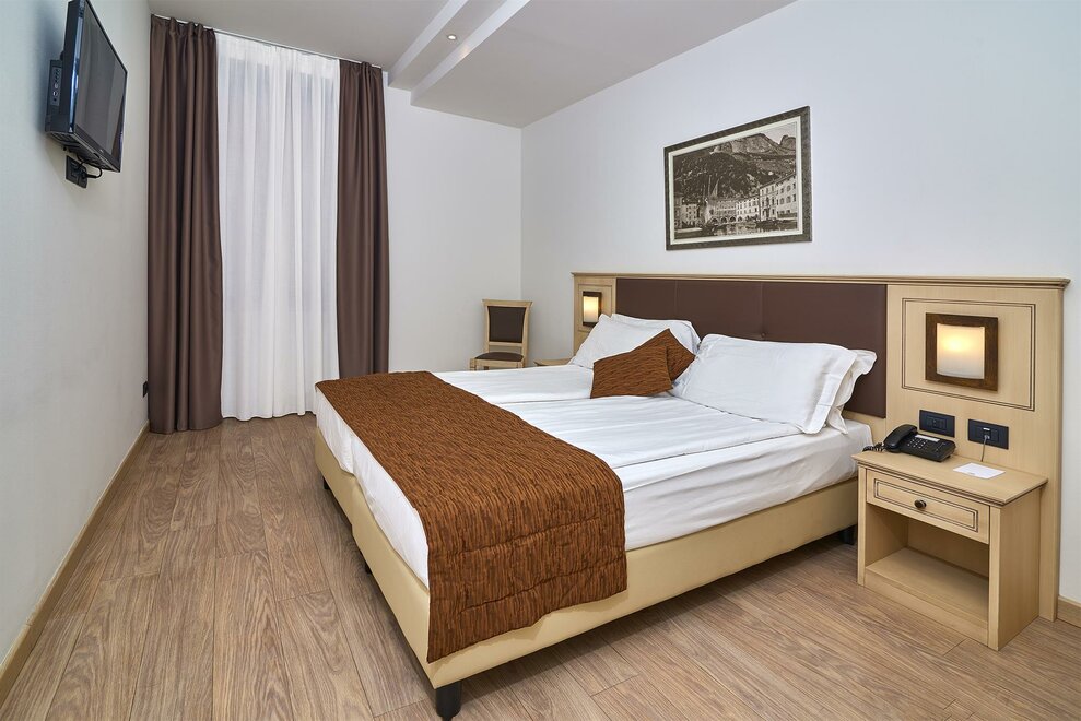 Skypool&Panorama Hotel Europa, nad jeziorem Garda w ekskluzywnym, starożytnym otoczeniu portu, wieży Apponale i pięknego placu w centrum historycznym, to hotel całkowicie i nowocześnie odnowiony. Z dawnych czasów zachował fasadę nad jeziorem oraz przyjemność oferowania uprzejmej i starannej gościnności, a także dokładną obsługę z wszystkimi udogodnieniami czterogwiazdkowego hotelu. Restauracja serwująca śniadanie w formie bufetu z tarasem z widokiem na historyczny port, elegancka sala wypoczynkowa z widokiem na wieżę, bar. Sala telewizyjna (sat.), czytelnia, sale konferencyjne, wszystkie z klimatyzacją, patio, taras słoneczny, trzy windy, dostępne dla osób niepełnosprawnych, parking. 61 pokoi wyposażonych w klimatyzację, bezpośredni telefon, telewizor satelitarny, sejf, marmurowe łazienki z wanną i prysznicem, suszarka do włosów, ekran ścienny, tablica świetlna, tablica flipchart, szczególnie staranna i szybka obsługa sekretariatu i informacji. Bezprzewodowy Internet, punkt internetowy i rowery wliczone w cenę. Prywatny parking (€10/dzień).