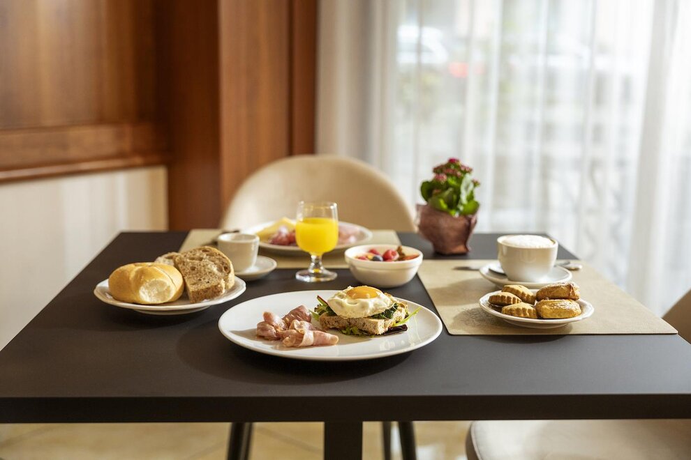Przestronna, całkowicie odnowiona, nowoczesna, materac nowy h 22 cm, okna dźwiękoszczelne, wszystkie z balkonem od strony alei lub ogrodu, podłoga laminowana, sejf, telefon, telewizor LCD, łazienki z eleganckimi wykończeniami, niektóre z prysznicem king size i słuchawką prysznicową, zestaw kosmetyków i suszarka do włosów. Mogą pomieścić do 3 dorosłych i można je zarezerwować z podwójnym łóżkiem lub trzema pojedynczymi.