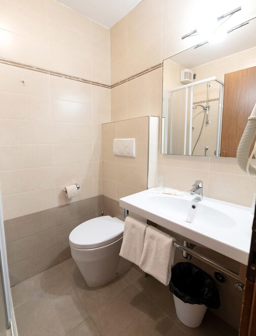 Do wskazanych cen należy doliczyć kwotę Taksę Miejską, obowiązkową zgodnie z prawem od 1 listopada 2015 roku. Taksę stosuje się do wszystkich Gości nietutejszych od 14. roku życia. Kwota wynosi € 1,50 za osobę za noc, maksymalnie przez 10 nocy, i musi być uregulowana bezpośrednio w Hotelu.Wyposażenie pokoju