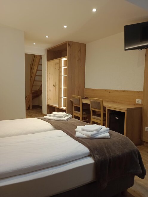 nasze pokoje pięcioosobowe są dużymi, wygodnymi pokojami i są szczególnie odpowiednie dla dużych rodzin z małymi i dużymi dziećmi. Odpowiednie również dla dorosłych, mają wewnętrzną antresolę.