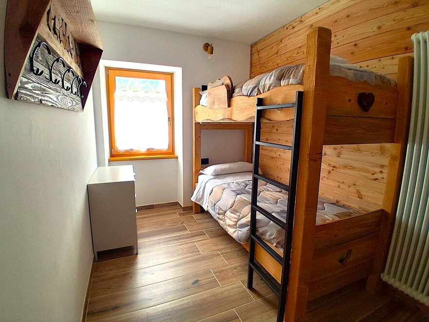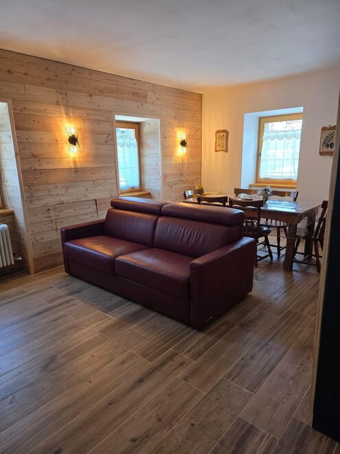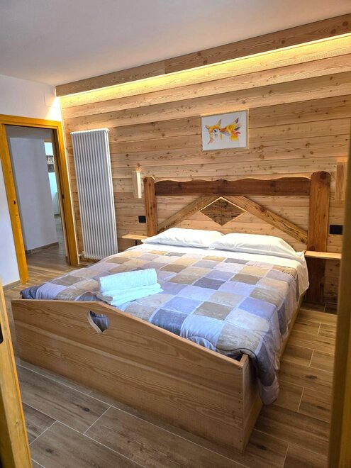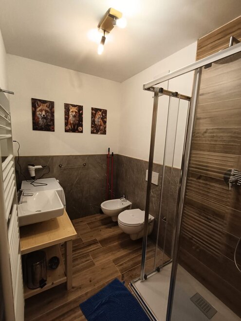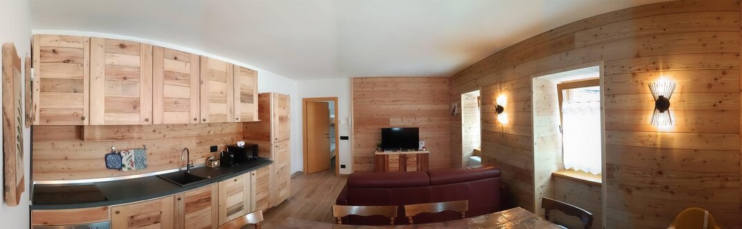 Wchodząc do budynku, po schodach, na pierwszym piętrze znajduje się apartament "Volpe". Przestrzeń jest dobrze proporcjonalna z typowymi, ale nowoczesnymi i wygodnymi meblami górskimi. Na parterze apartamentu znajduje się przestronny pokój dz dzienny dobrze oświetlony naturalnym światłem z trzech okien. W pełni wyposażona kuchnia (zmywarka, piekarnik, mikrofalówka, ekspres do kawy, płyta indukcyjna i lodówka), przestronna jadalnia na 8 miejsc, rozkładana sofa dwuosobowa w salonie naprzeciwko telewizora. Na tym samym piętrze znajdują się sypialnie: jedna z podwójnym łóżkiem z prywatną łazienką oraz jedna czteroosobowa z łóżkami piętrowymi. Duża łazienka z wszystkimi udogodnieniami oraz pralka-suszarka na wypadek nieprzewidzianych okoliczności.