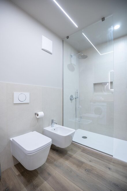 WC, oddzielne WC, łazienka, ilość łazienek: 2, bidet, prysznic na korytarzu, prysznic lub wanna, prysznic, WC, ilość toalet: 2, umywalka, łazienka,WC, bieżąca woda ciepła/zimna, wanna