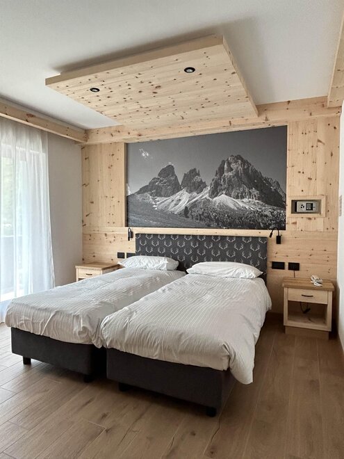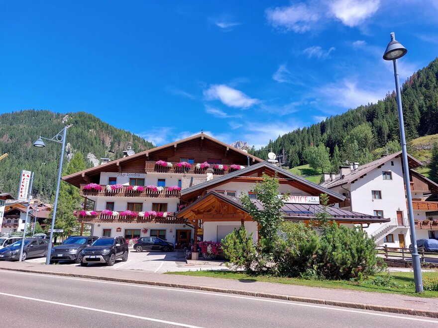 Garnì prowadzony przez rodzinę, położony 500 m od centrum Canazei, zaledwie kilka metrów od kolejki linowej Belvedere, na głównej ulicy miejscowości naprzeciw wejścia do kempingu, 100 m od przystanku autobusu komunikacji publicznej i skibusu. W słonecznej i spokojnej okolicy. Posiada dużą przestrzeń parkingową, ogród i grill na okres letni. Wszystkie pokoje niedawno wyremontowane, prawie wszystkie z balkonem, wszystkie z łazienkami (prysznic, WC, bidet i umywalka). Telewizor i telefon z dostępem do Internetu, sejf i suszarka do włosów.