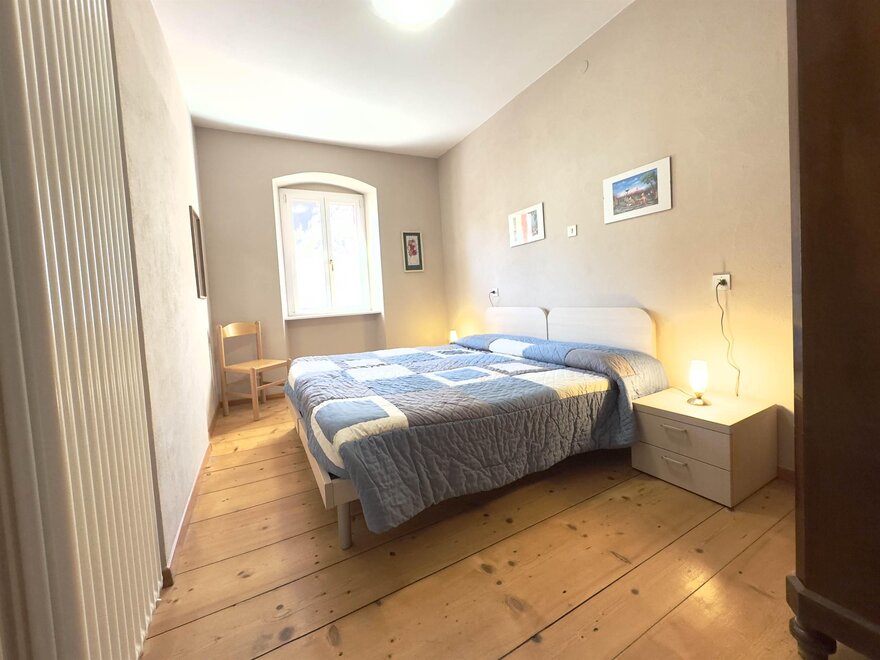 Mieszkanie o powierzchni 80 m² znajduje się na drugim piętrze, w centralnej, ale jednocześnie cichej okolicy. Składa się z sypialni małżeńskiej oraz pokoju dwuosobowego połączonego z pokojem jednoosobowym; przestronnej kuchni z salonem; dużego korytarza i łazienki. Mieszkanie dodatkowo dysponuje: pralką, zmywarką, telewizorem, balkonem, odkurzaczem, żelazkiem i deską do prasowania, suszarką do włosów, przechowalnią nart oraz ogrzewaniem autonomicznym. Bezpłatne połączenie Wi-Fi. Przystanek skibusa znajduje się w odległości kilku kroków. Z łączną liczbą 5 miejsc noclegowych, idealne dla rodzin lub grupy przyjaciół. Dla najmłodszych dostępne są łóżeczko, wanienka do kąpieli i krzesełko do karmienia. W cenę wliczone są: ogrzewanie, media i sprzątanie końcowe. Na życzenie, za dodatkową opłatą: pościel i ręczniki.