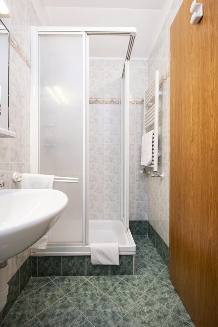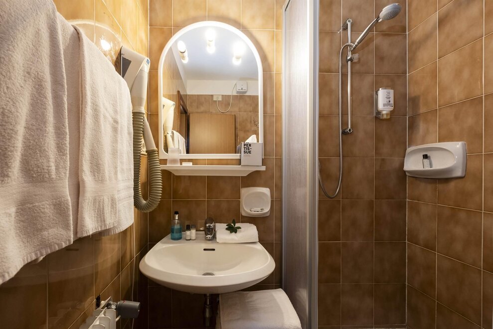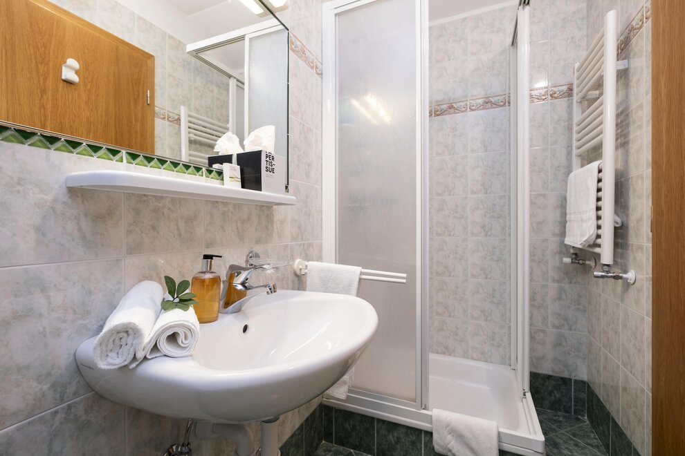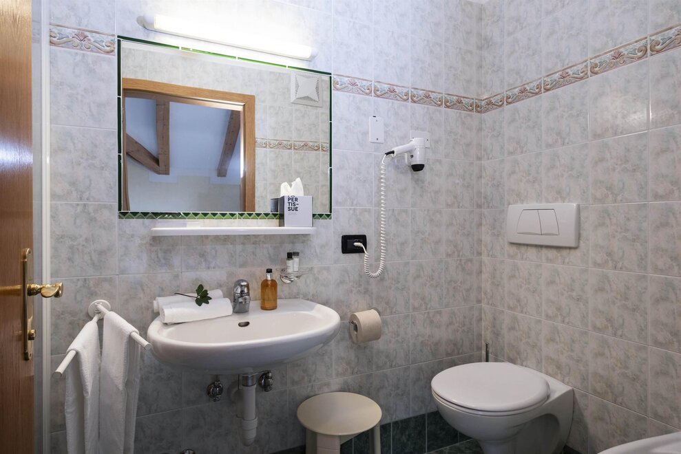 Niektóre pokoje znajdują się na pierwszym piętrze, od strony ogrodu, z tarasem i bezpośrednim dostępem do zieleni: mniej widokowe, ale idealne dla tych, którzy cenią sobie wygodę. Ekspozycje różnią się między stroną południową, z widokiem na Cima Dodici, a stroną północną, z widokiem na Ciampedie i Roda di Vael.